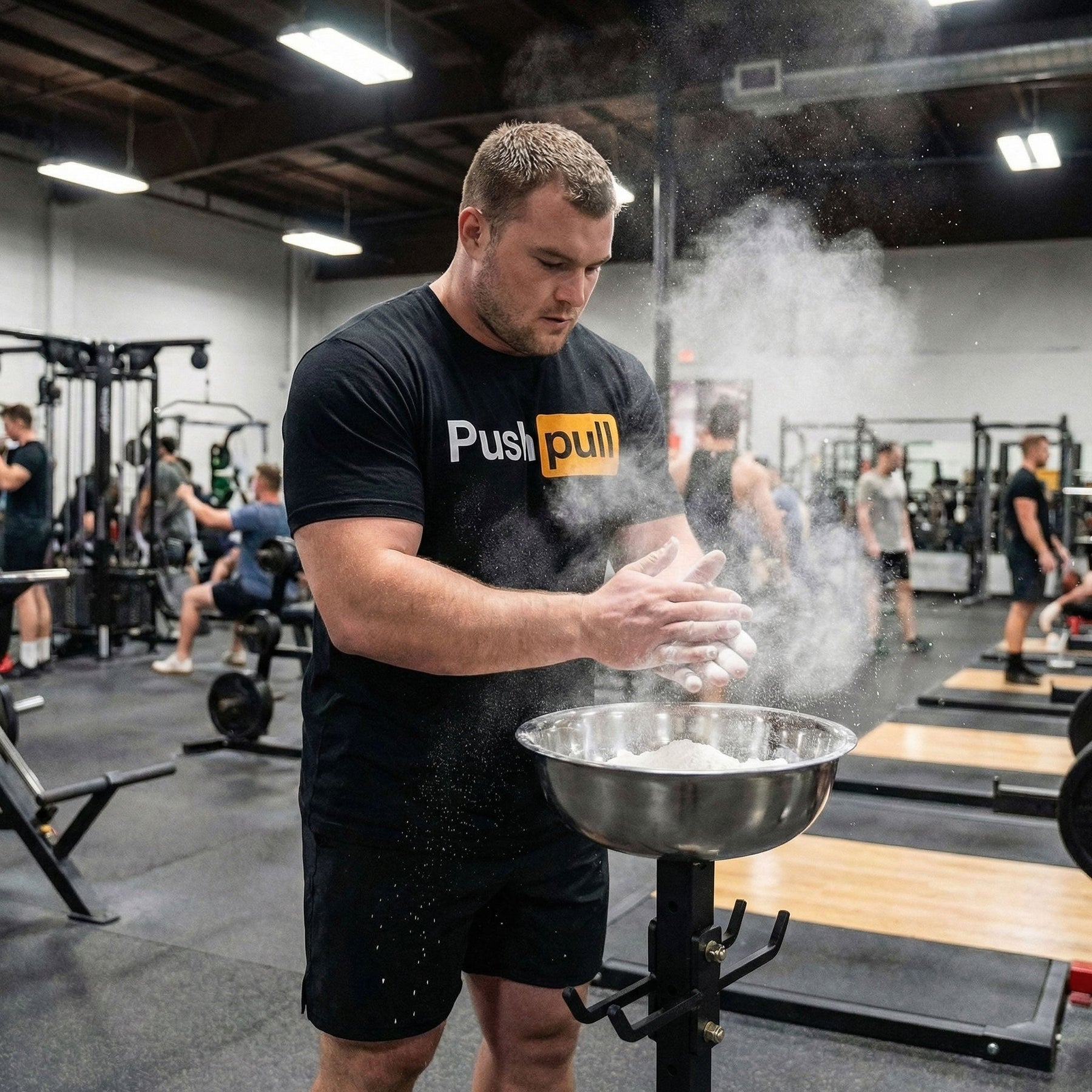 This isn't your average gym shirt. It's a 60/40 cotton-poly blend, soft enough for all-day wear, tough enough to handle heavy training sessions. Hand-printed in Tennessee by a competitive powerlifter who knows what it takes under the bar.