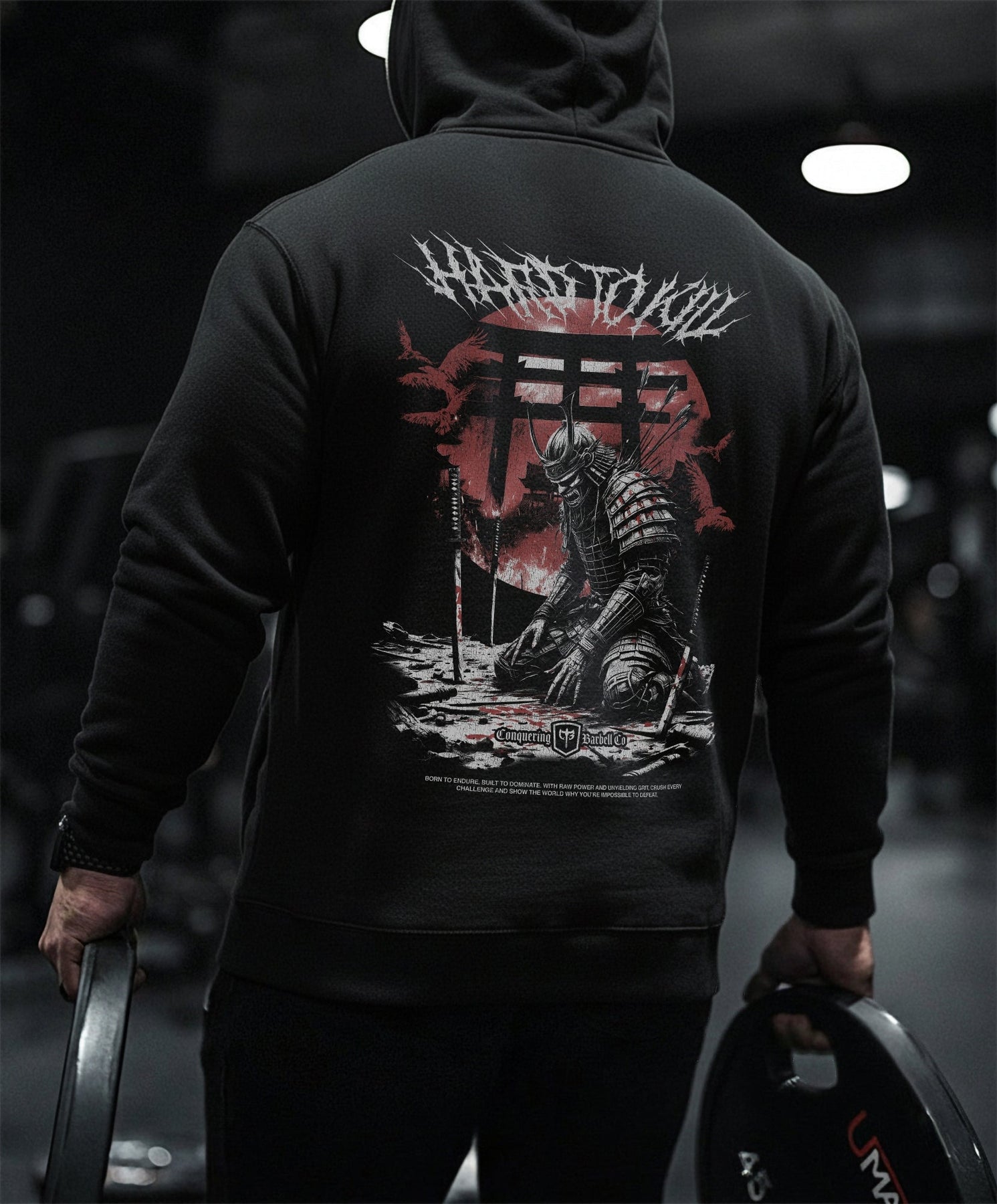 Samurai - Hard to Kill - on Black Pullover Hoodie - Conquering Barbell