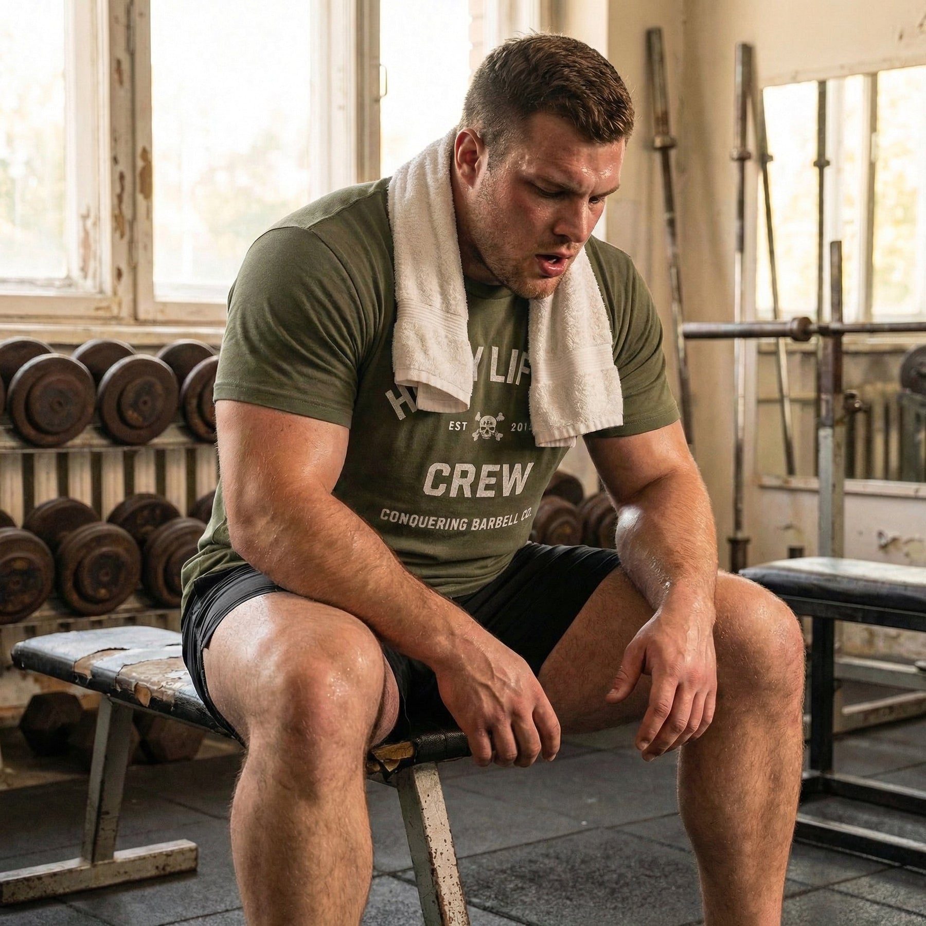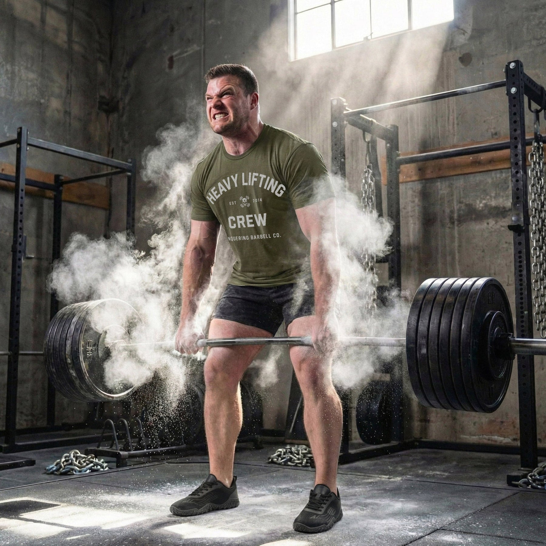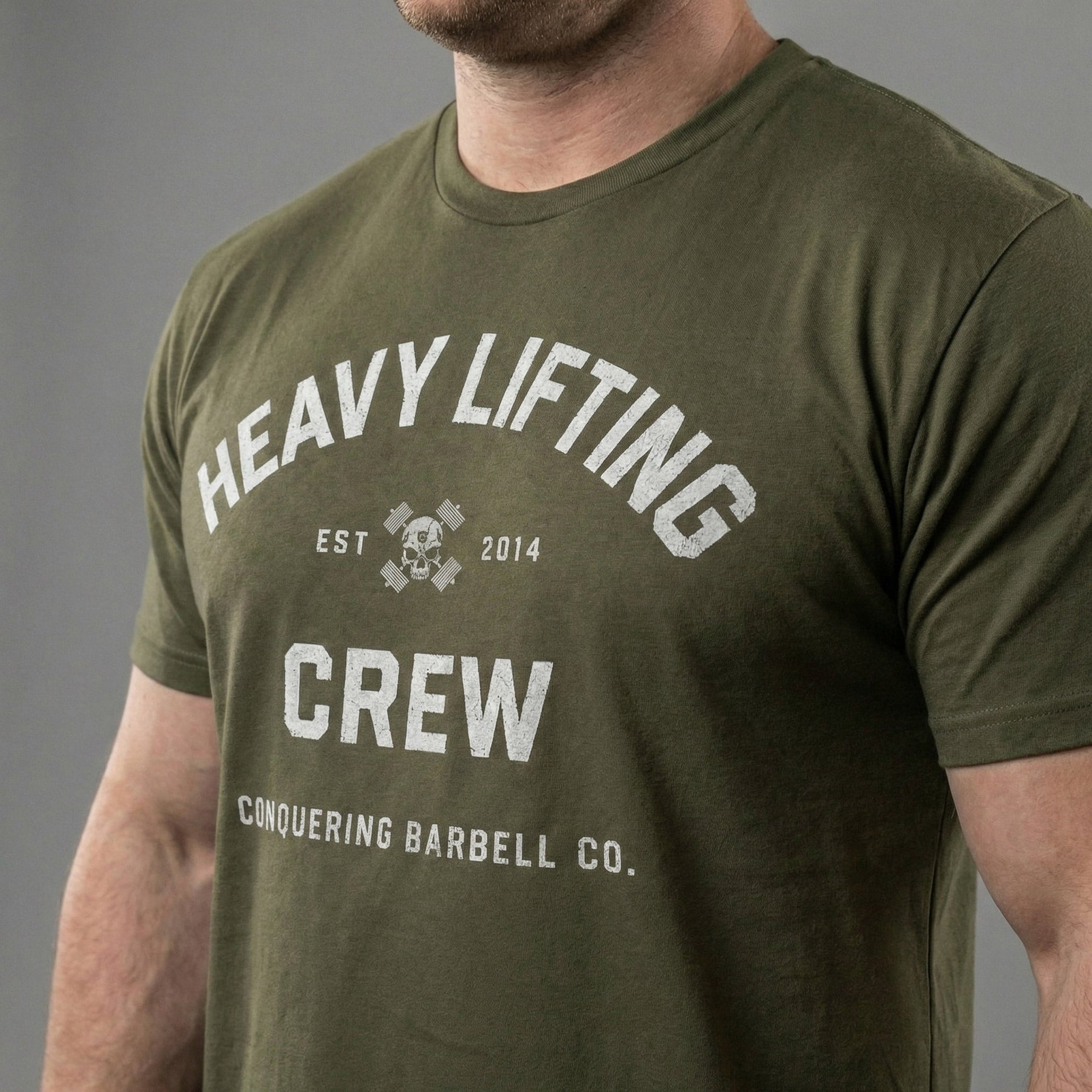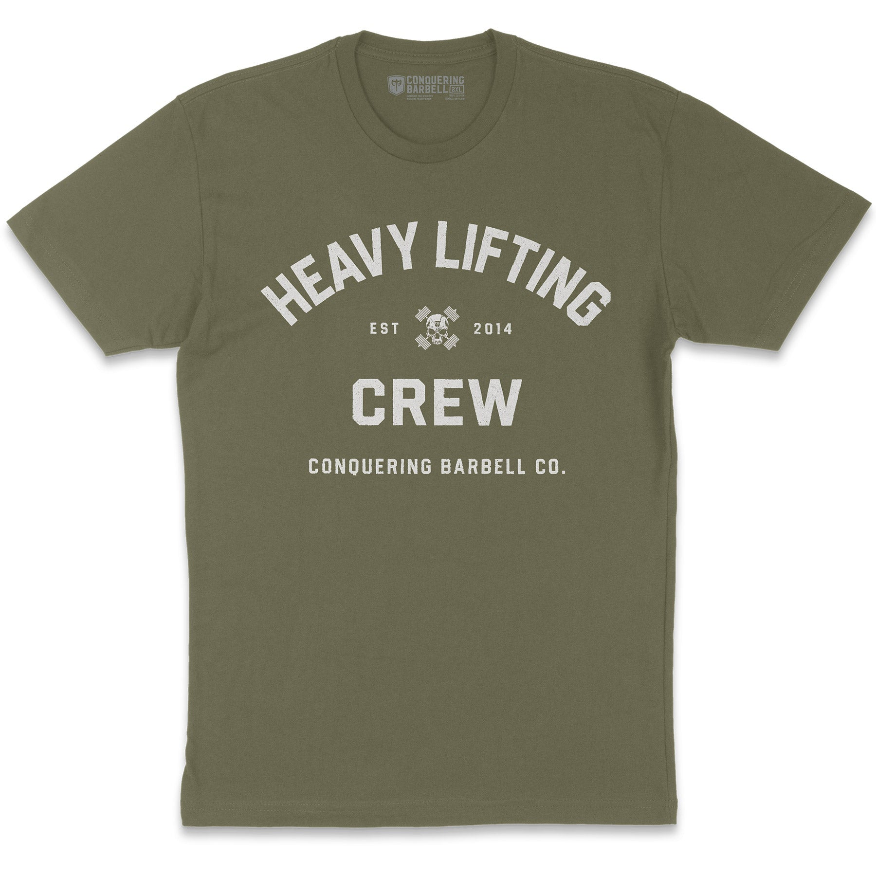 Heavy Lifting Crew - Military Green Tee - Conquering Barbell