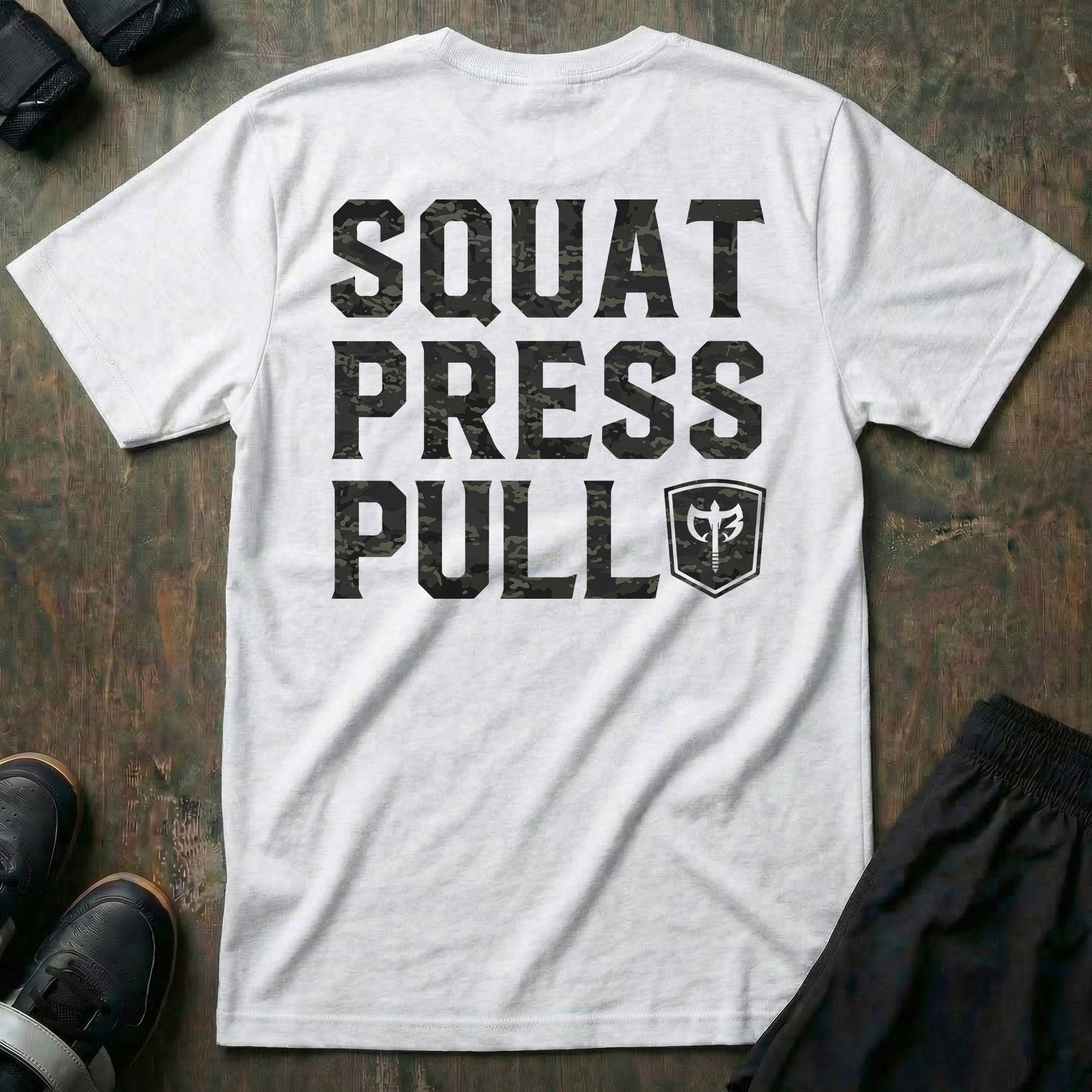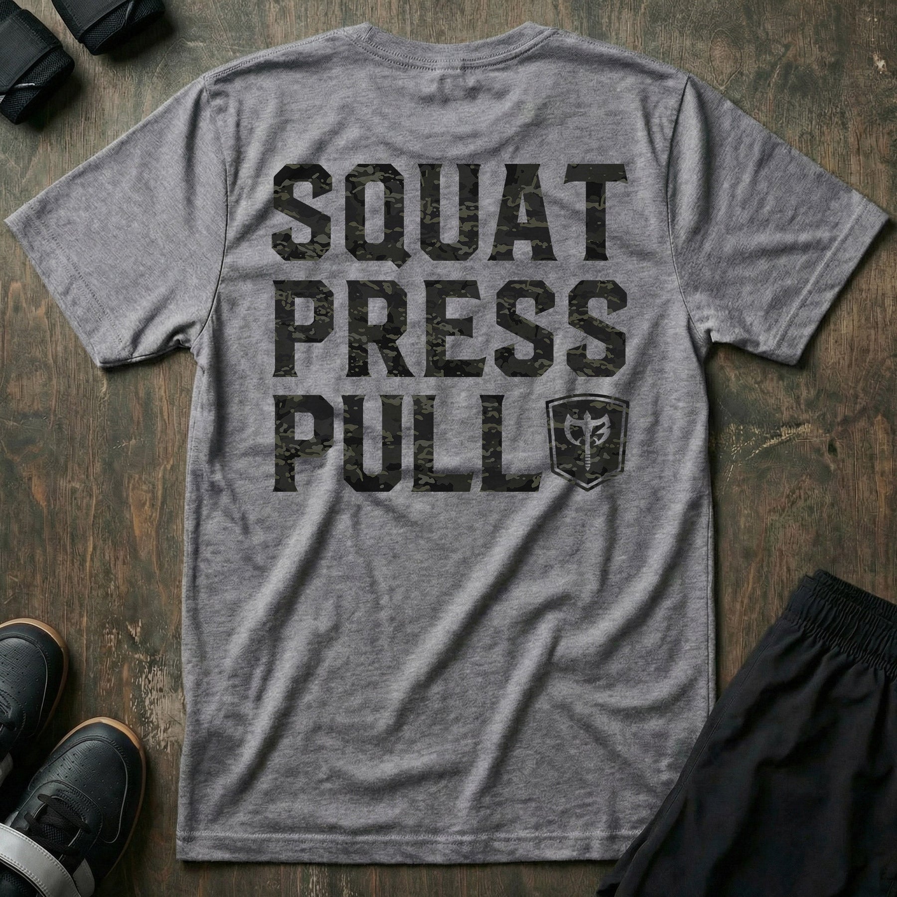 Squat Press Pull® - Black Camo - Powerlifting Tee