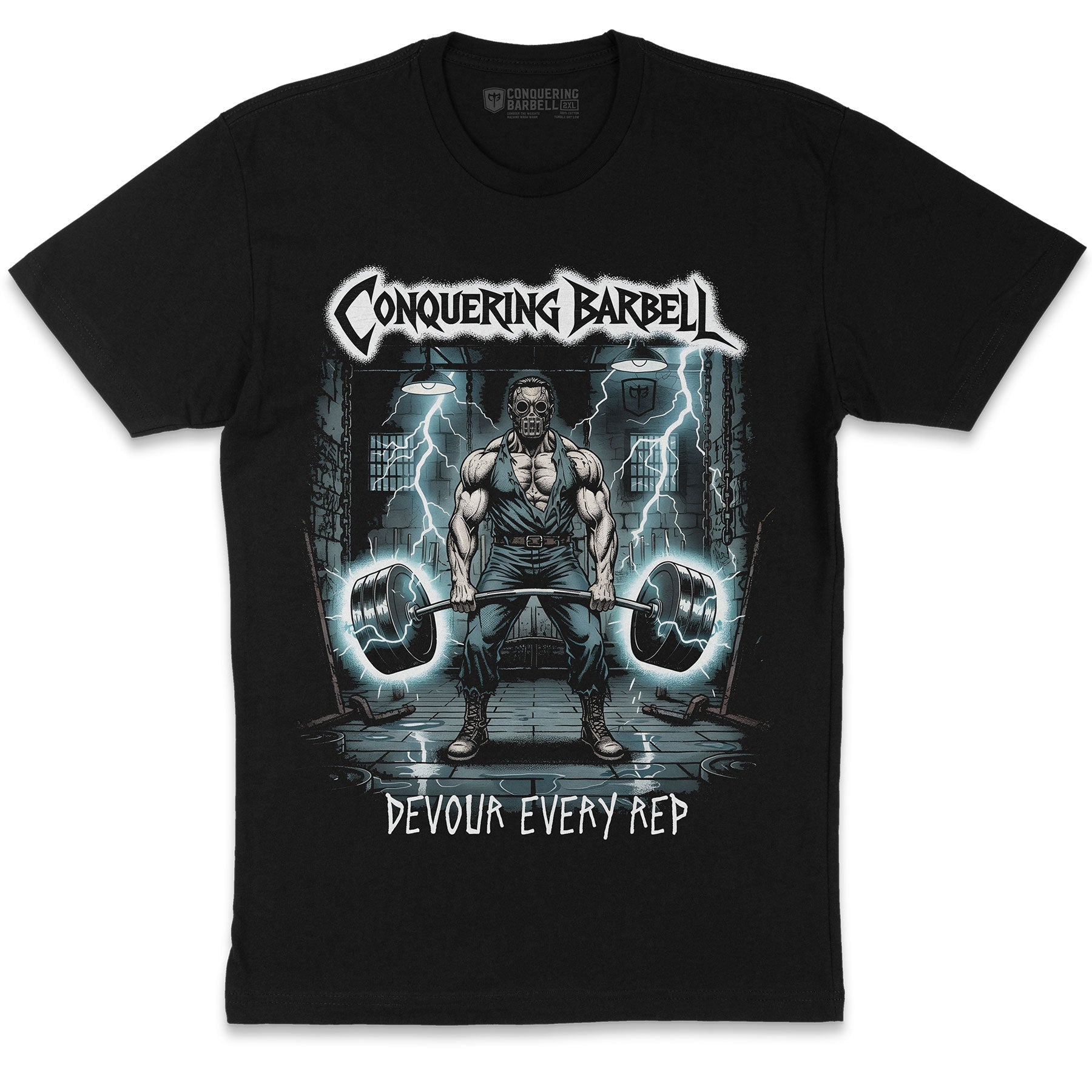 Devour Every Rep - on Black Tee - Conquering Barbell