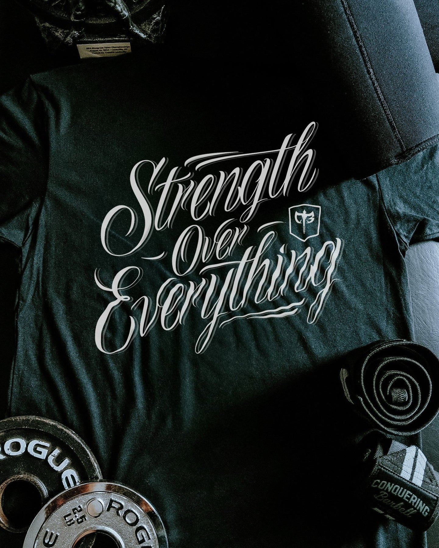 Your priorities in one line. The Strength Over Everything tee is a clean, script-style statement for lifters who put work first—no noise, just progress.