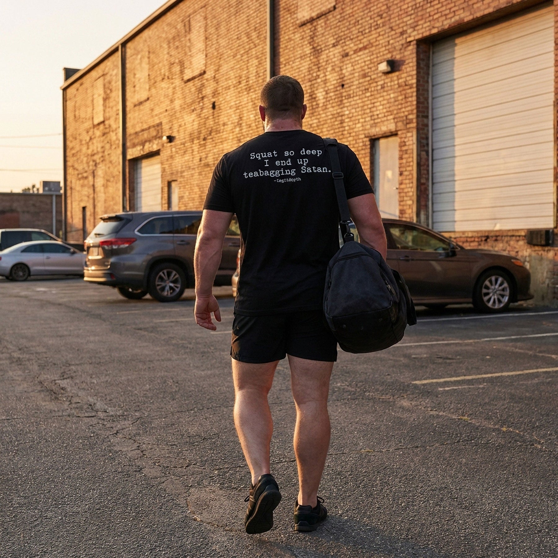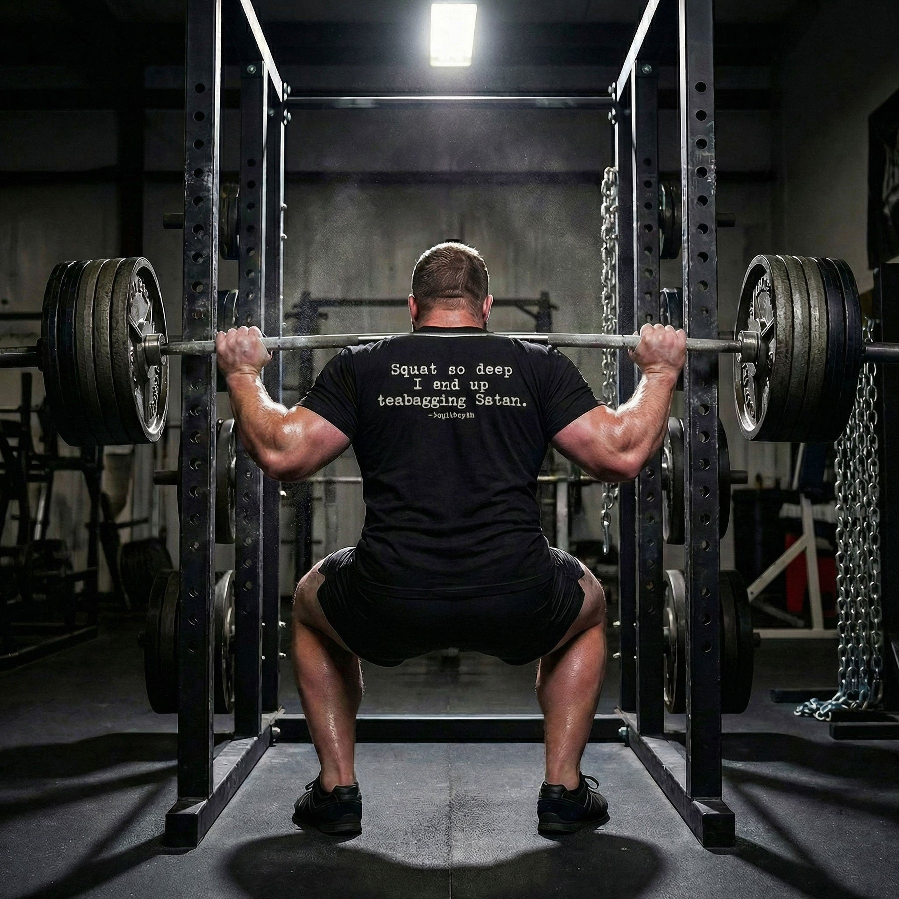 This isn't your average gym shirt. It's a 60/40 cotton-poly blend, soft enough for all-day wear, tough enough to handle heavy training sessions. Hand-printed in Tennessee by a competitive powerlifter who knows what it takes under the bar.