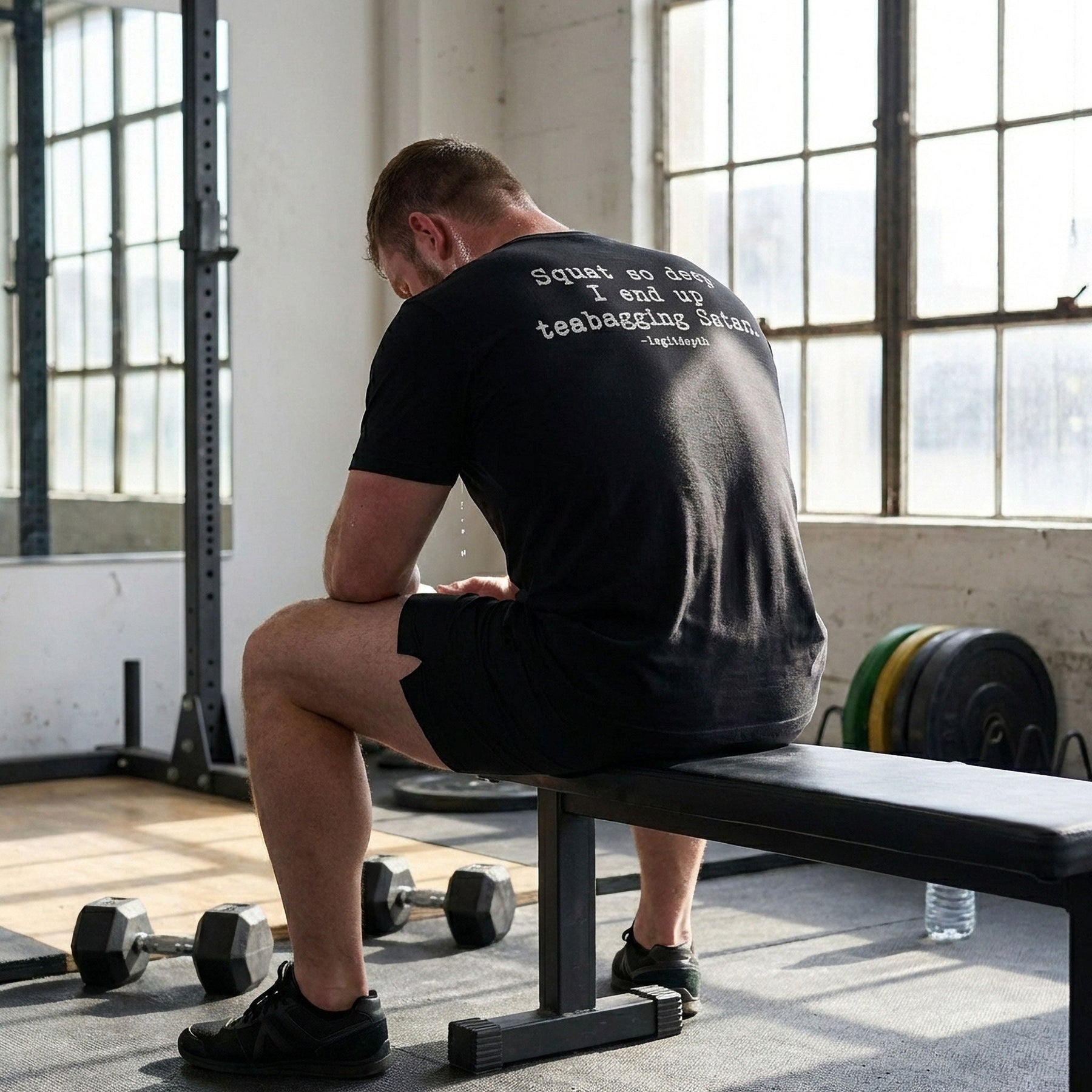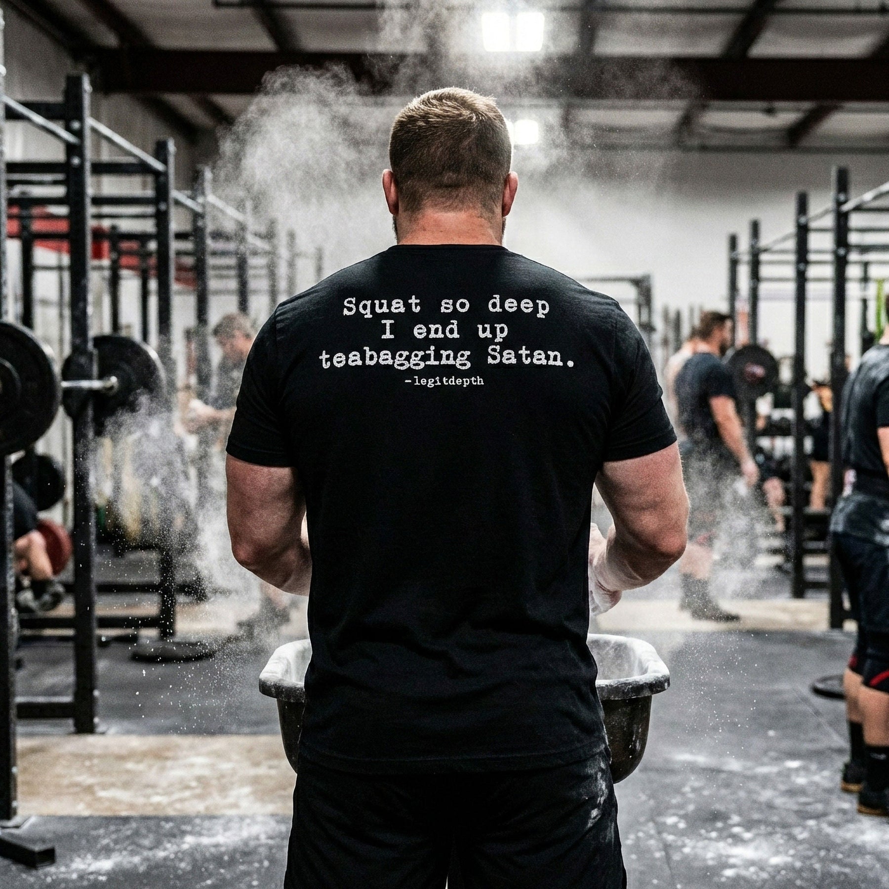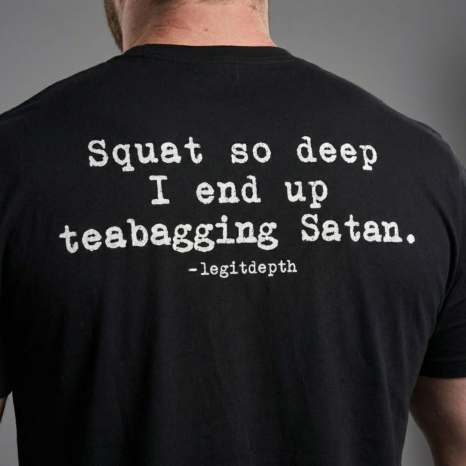 Legit Depth - Squat So Deep - on Black Tee - Conquering Barbell