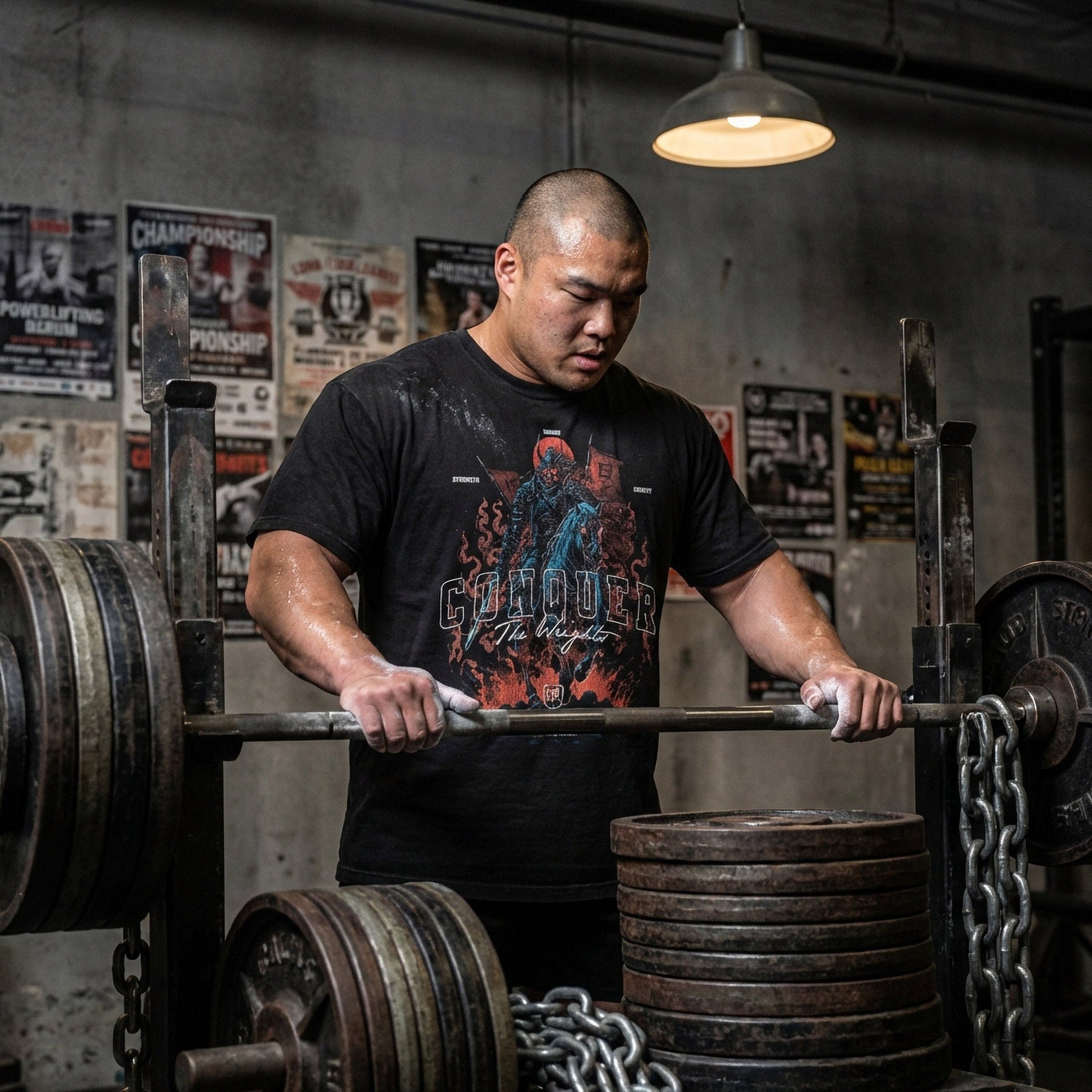 Hand-printed in Tennessee by a competitive powerlifter who knows what it takes under the bar. Heavier, quality material that holds up to real work. No flimsy fast-fashion garbage. Just a shirt built for lifters who show up, grind, and conquer the weights.