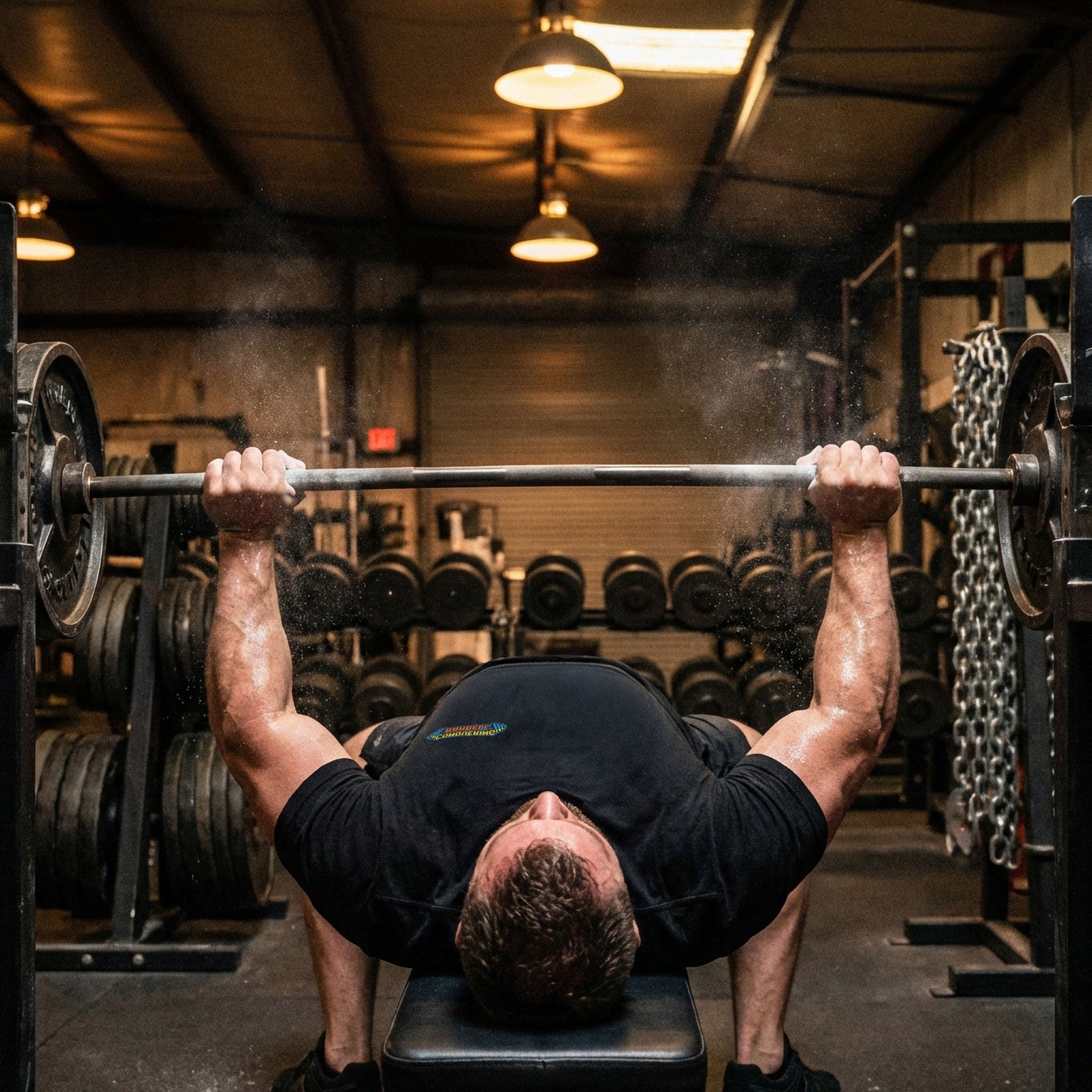 This isn't your average gym shirt. It's a 60/40 cotton-poly blend, soft enough for all-day wear, tough enough to handle heavy training sessions. Hand-printed in Tennessee by a competitive powerlifter who knows what it takes under the bar.