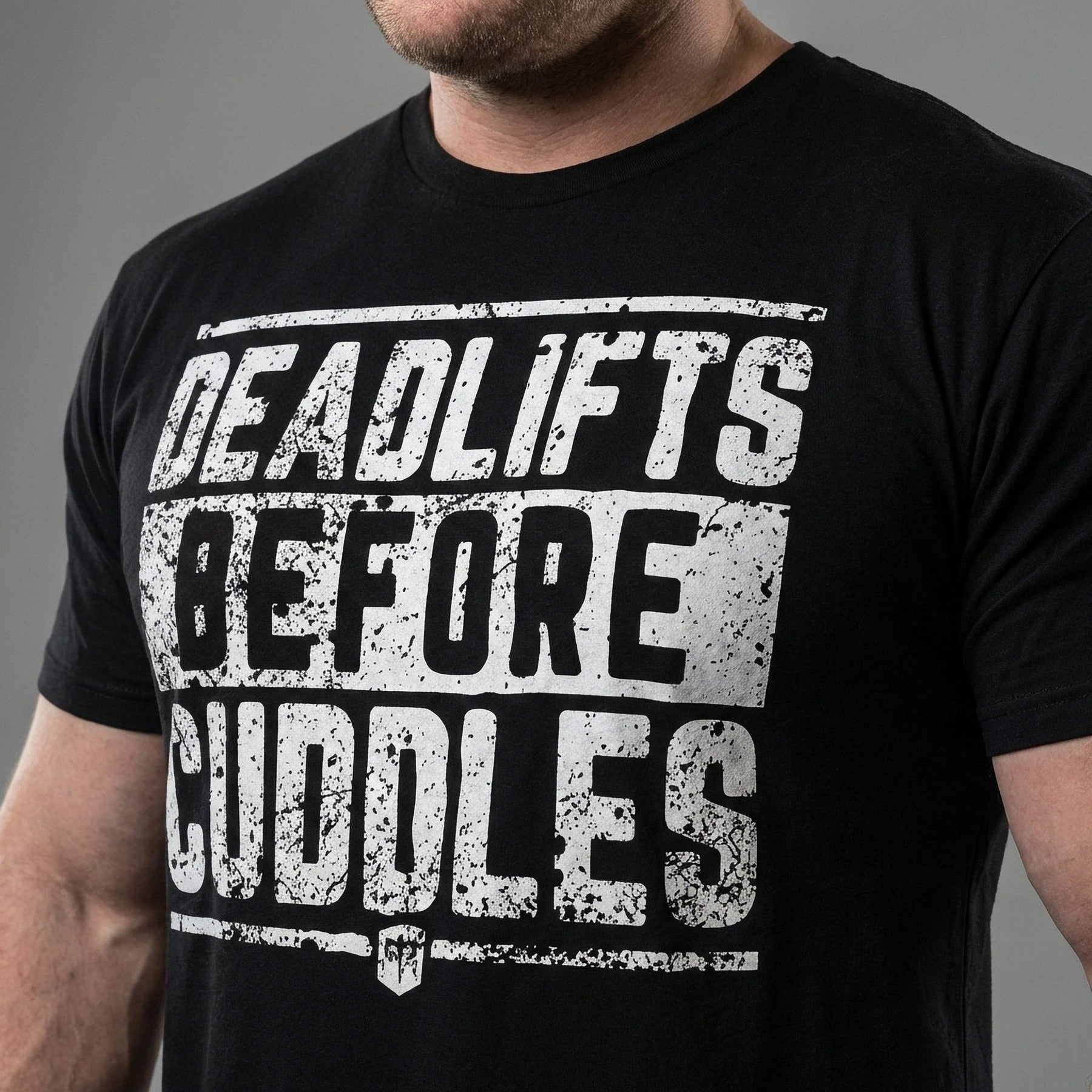 Deadlifts Before Cuddles - on Black Tee