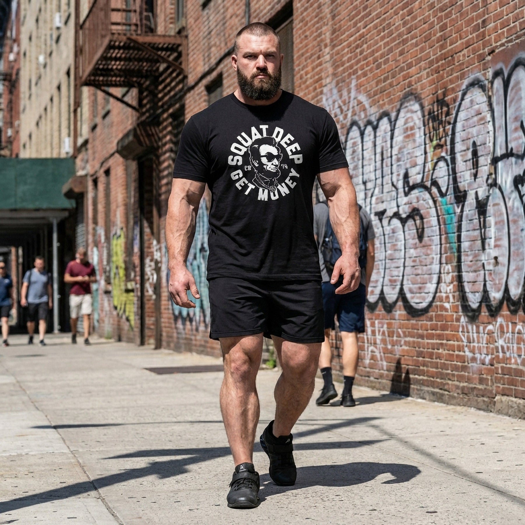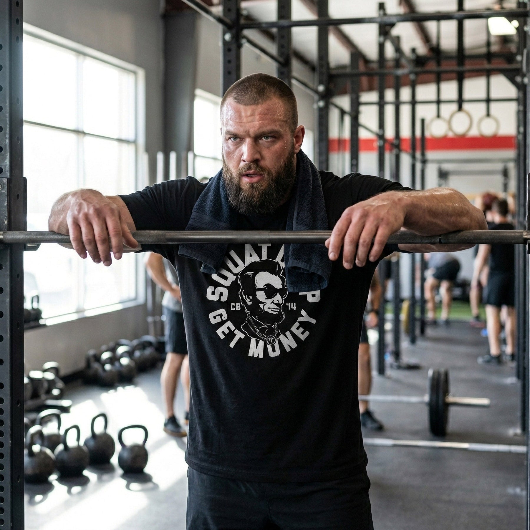 This isn't your average gym shirt. It's a 60/40 cotton-poly blend, soft enough for all-day wear, tough enough to handle heavy training sessions. Hand-printed in Tennessee by a competitive powerlifter who knows what it takes under the bar.
