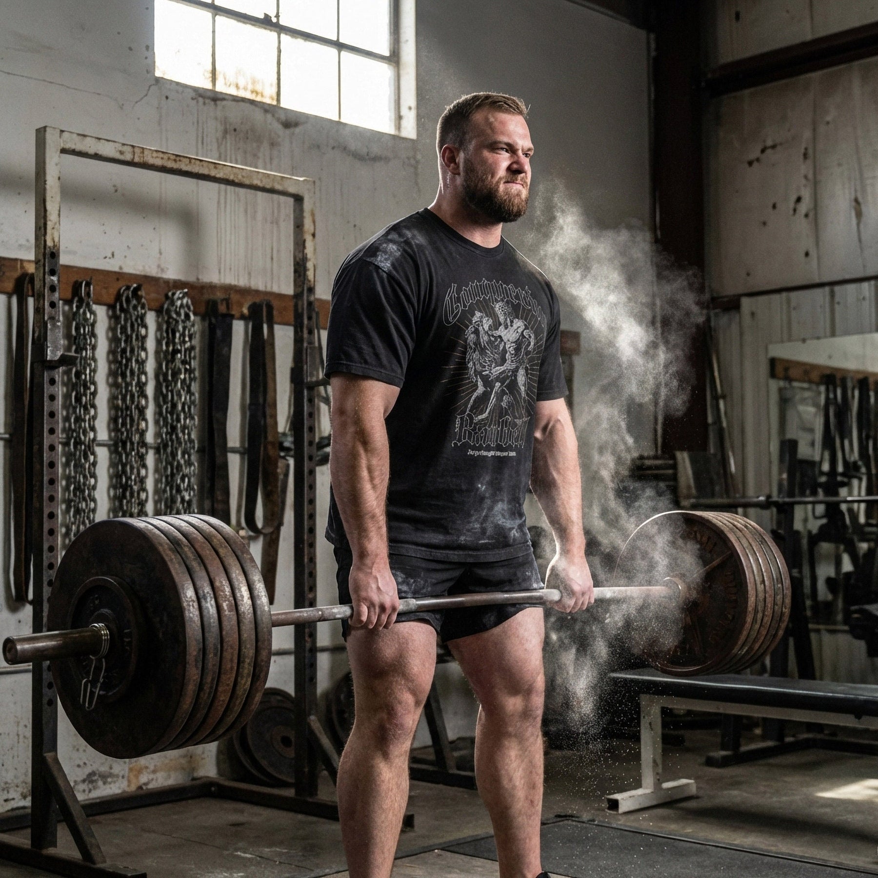 Hand-printed in Tennessee by a competitive powerlifter who knows what it takes under the bar. Heavier, quality material that holds up to real work. No flimsy fast-fashion garbage. Just a shirt built for lifters who show up, grind, and conquer the weights.