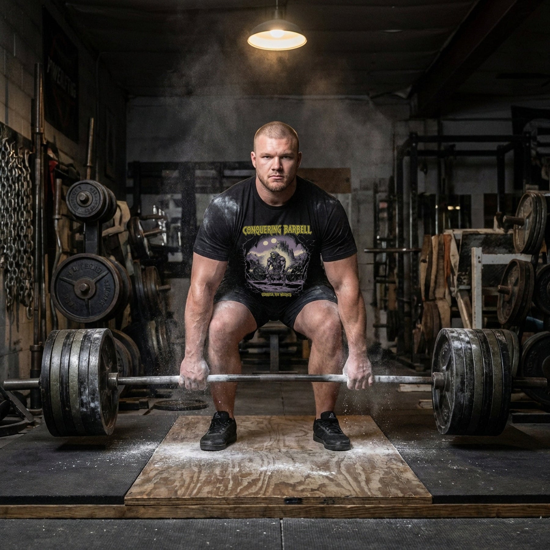This isn't your average gym shirt. It's a 60/40 cotton-poly blend, soft enough for all-day wear, tough enough to handle heavy training sessions. Hand-printed in Tennessee by a competitive powerlifter who knows what it takes under the bar.