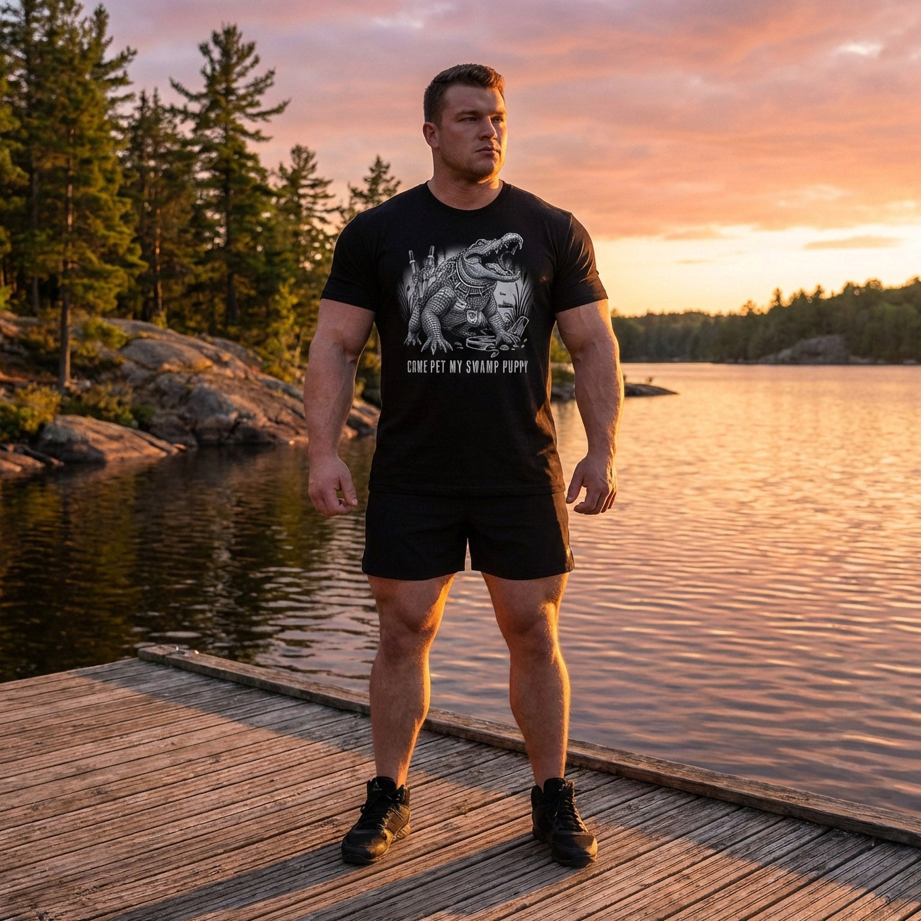 Come Pet My Swamp Puppy - Black Tee - Conquering Barbell