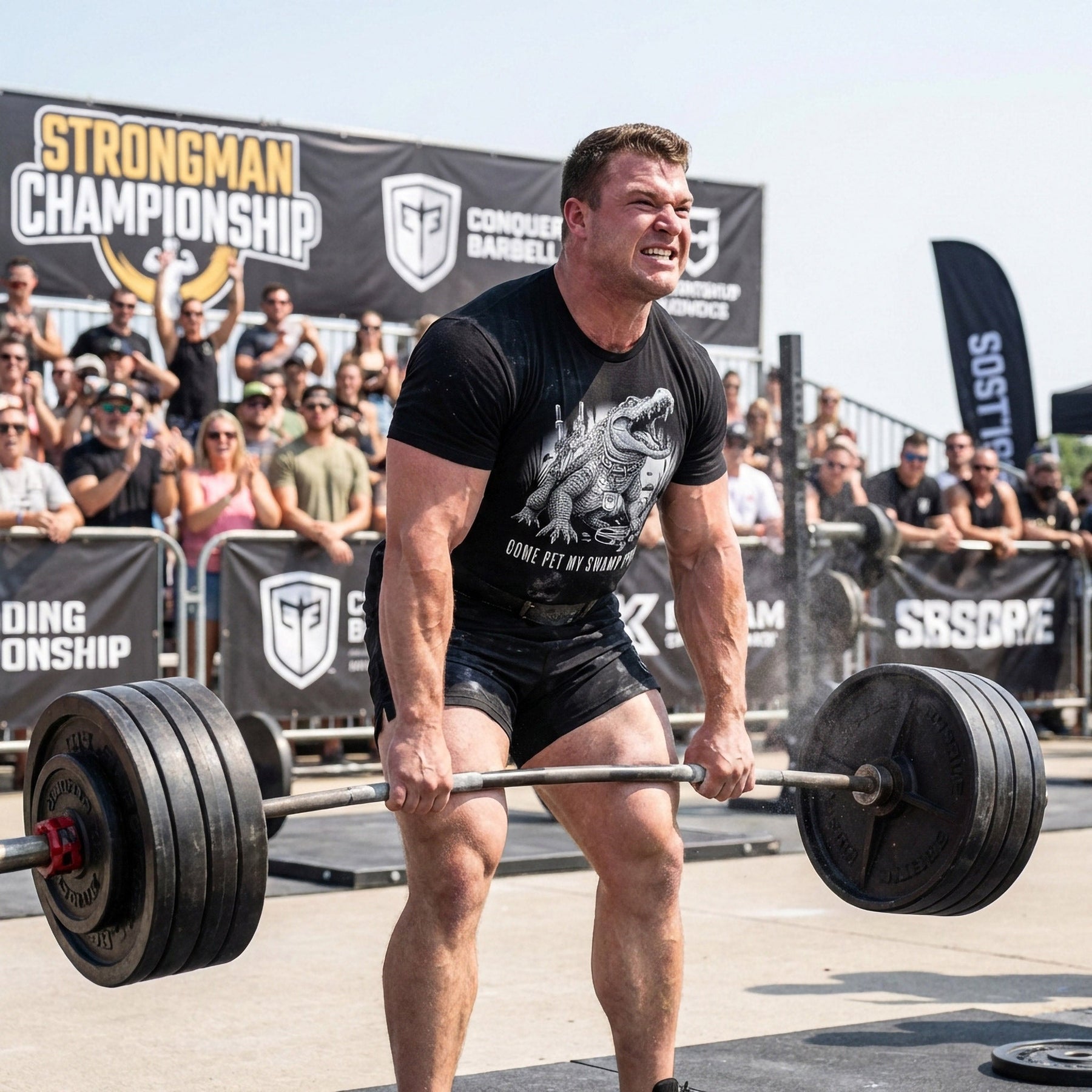 This isn't your average gym shirt. It's a 60/40 cotton-poly blend, soft enough for all-day wear, tough enough to handle heavy training sessions. Hand-printed in Tennessee by a competitive powerlifter who knows what it takes under the bar.