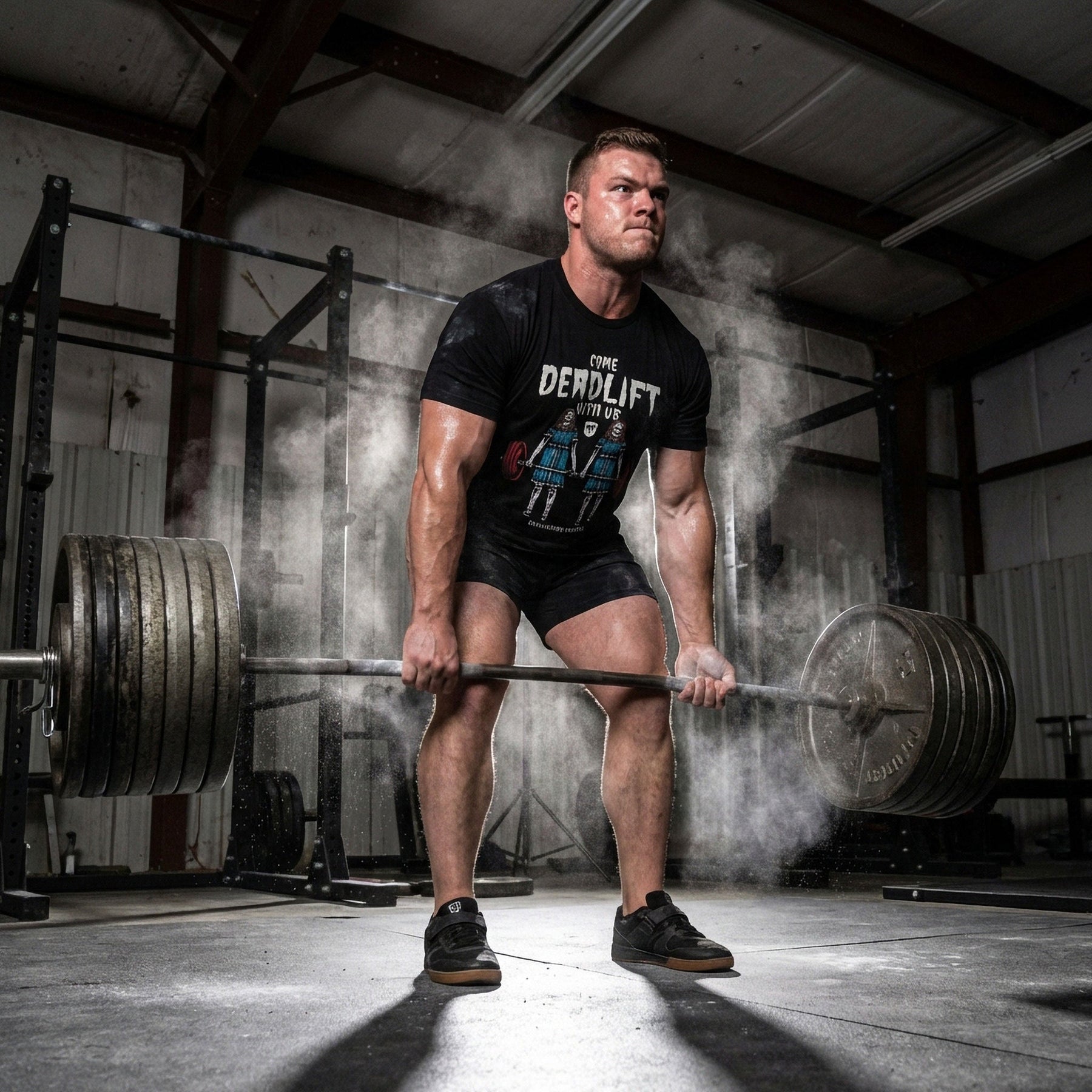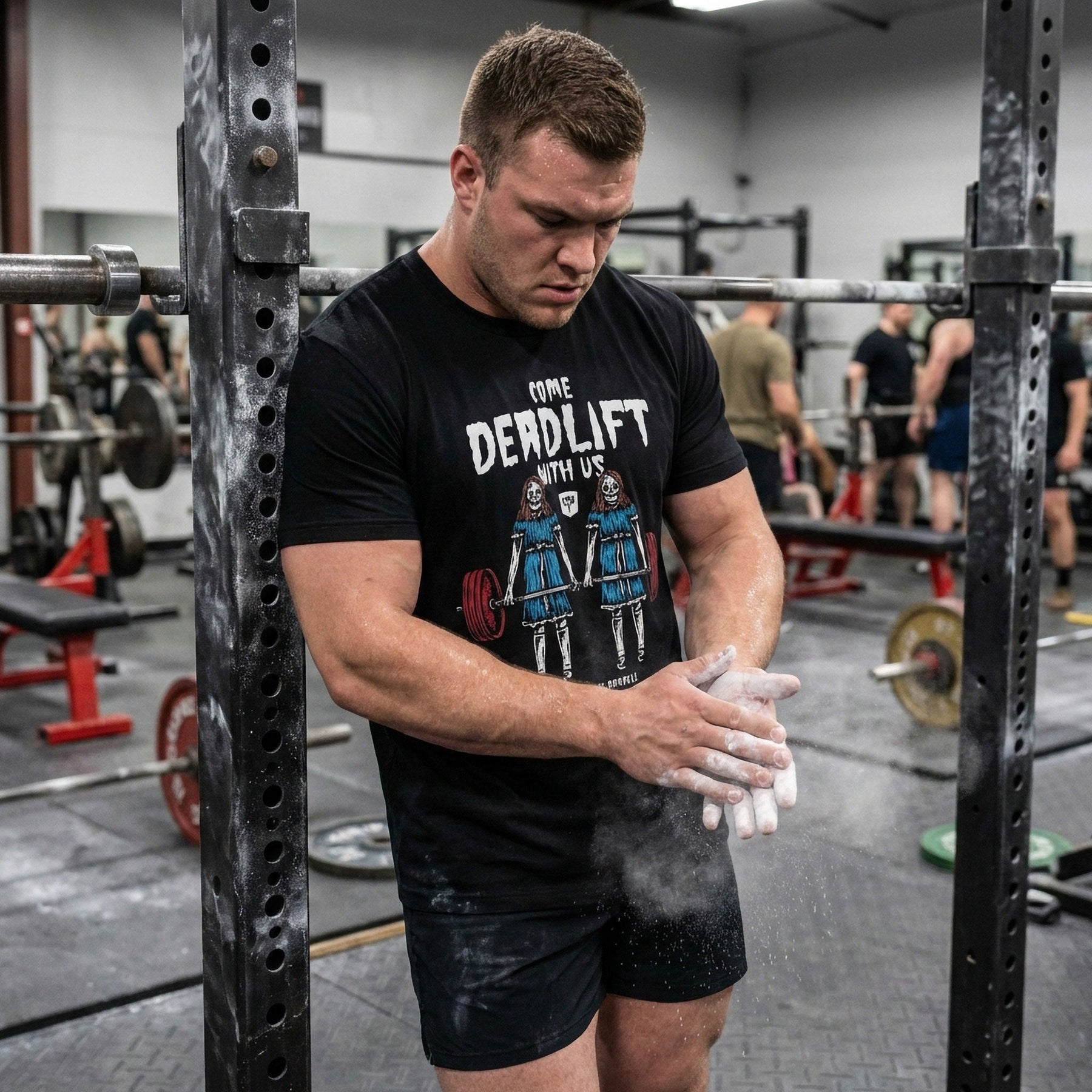 This isn't your average gym shirt. It's a 60/40 cotton-poly blend, soft enough for all-day wear, tough enough to handle heavy training sessions. Hand-printed in Tennessee by a competitive powerlifter who knows what it takes under the bar.
