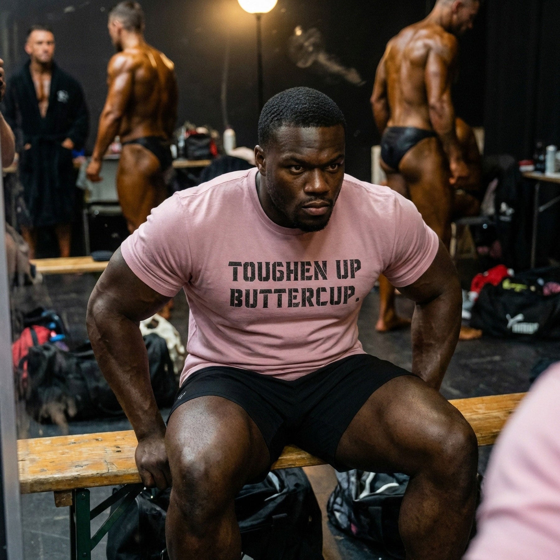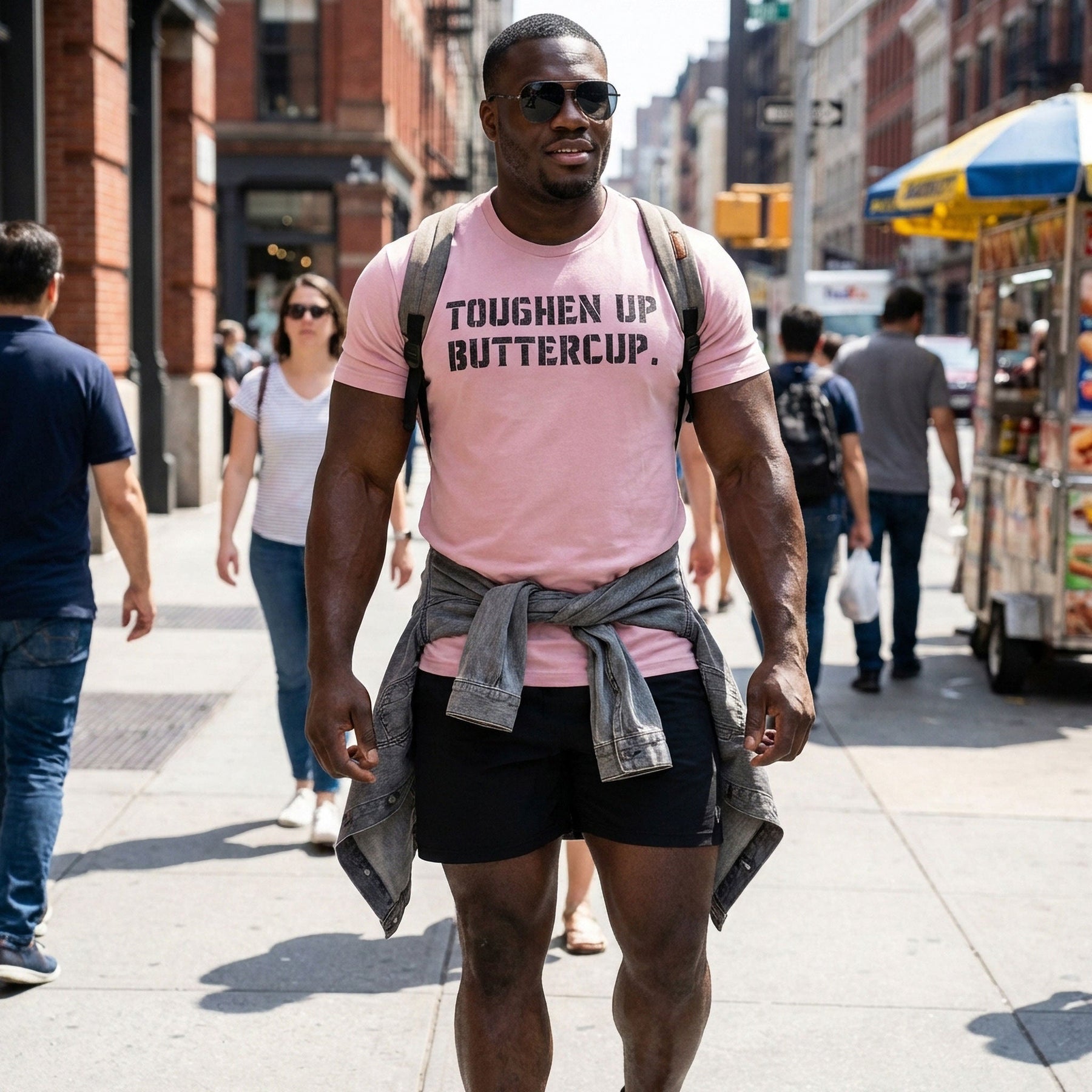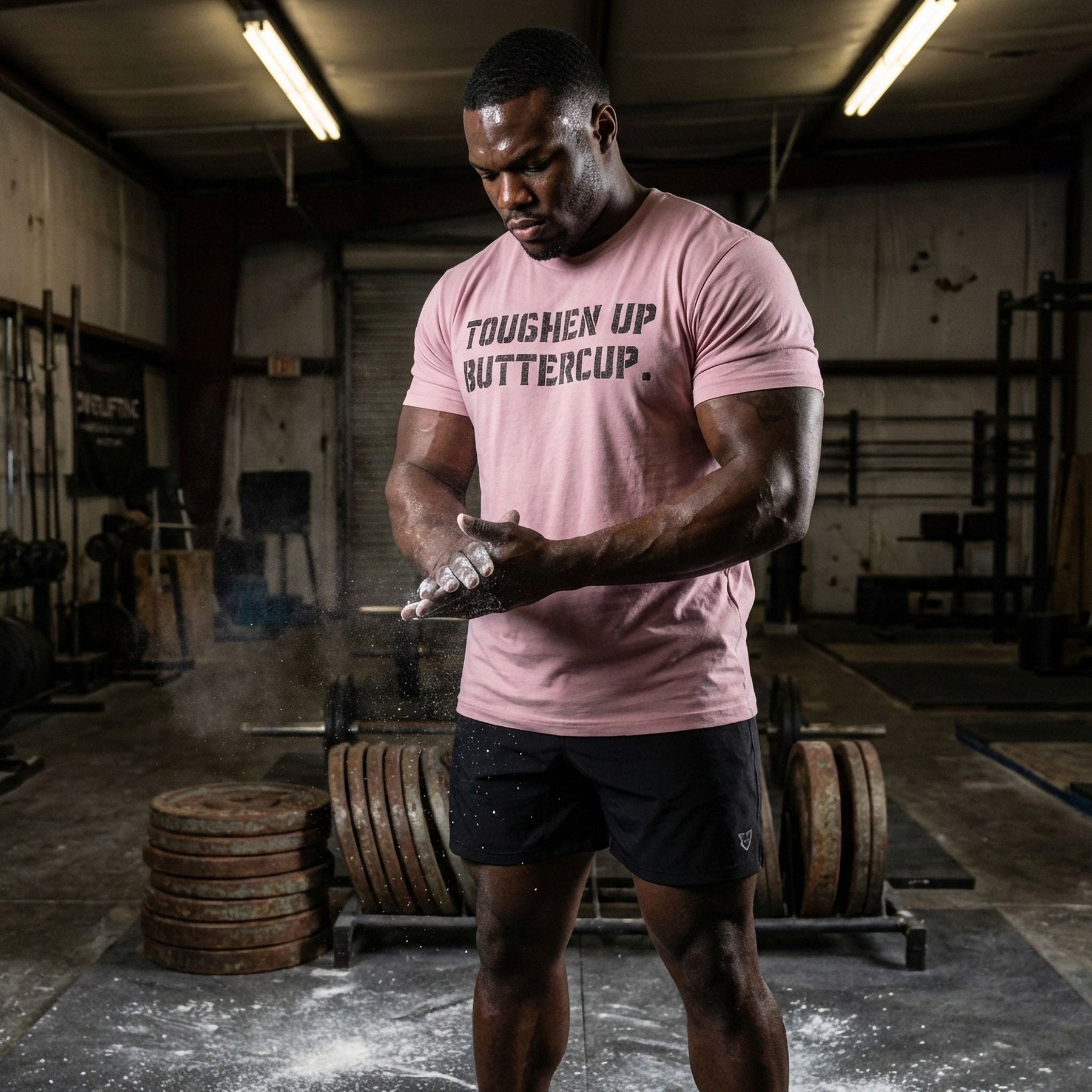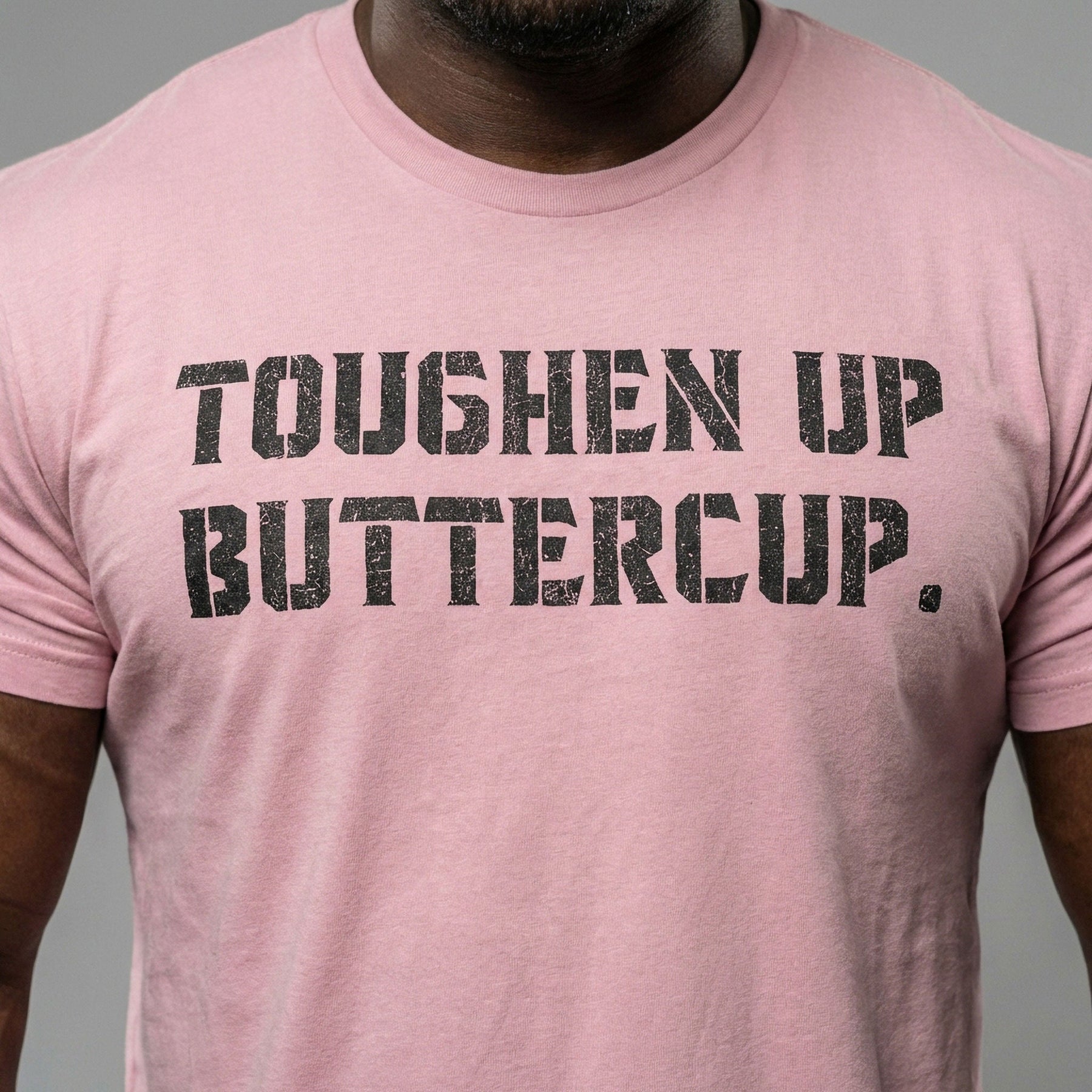 Toughen Up Buttercup. - on Pink tee - Conquering Barbell