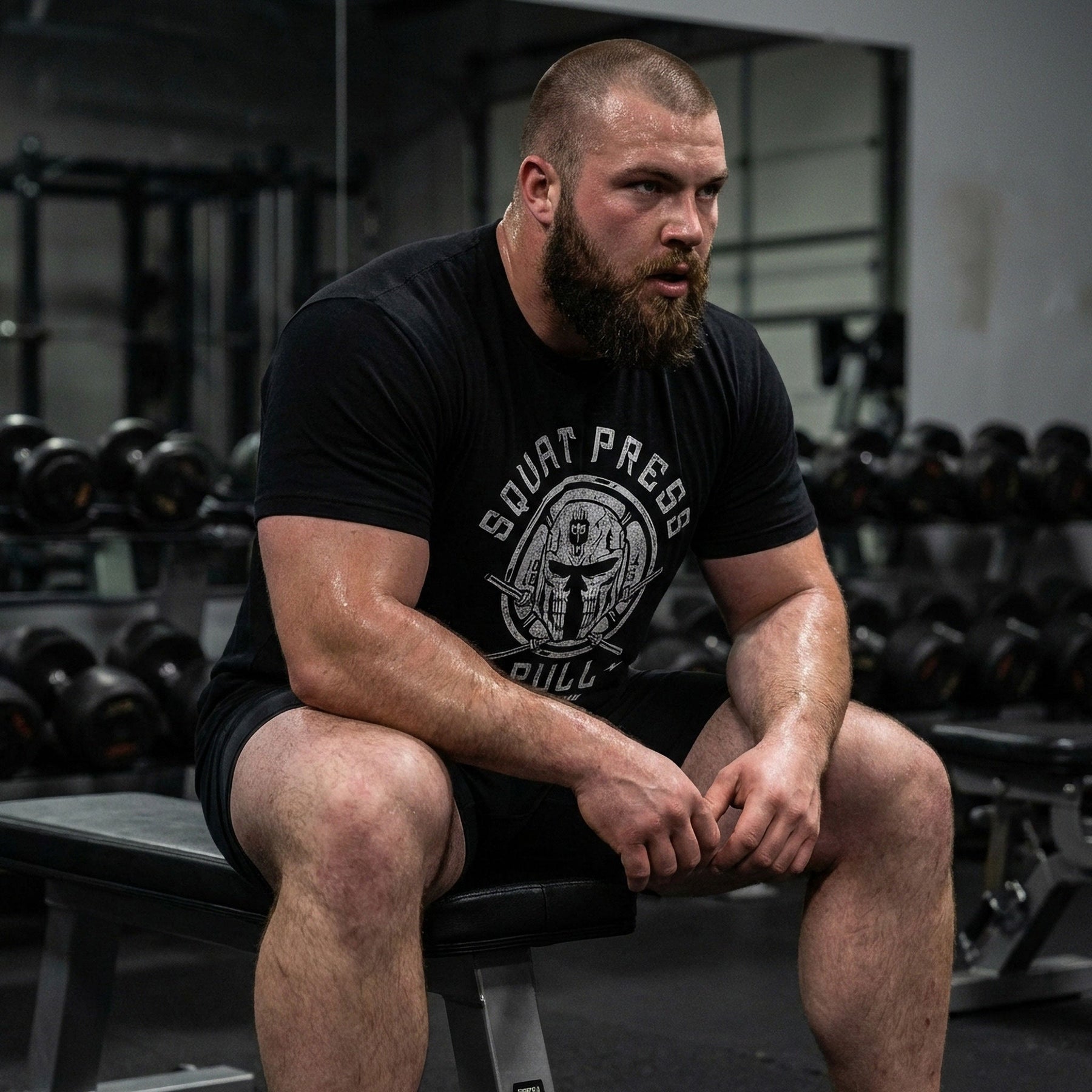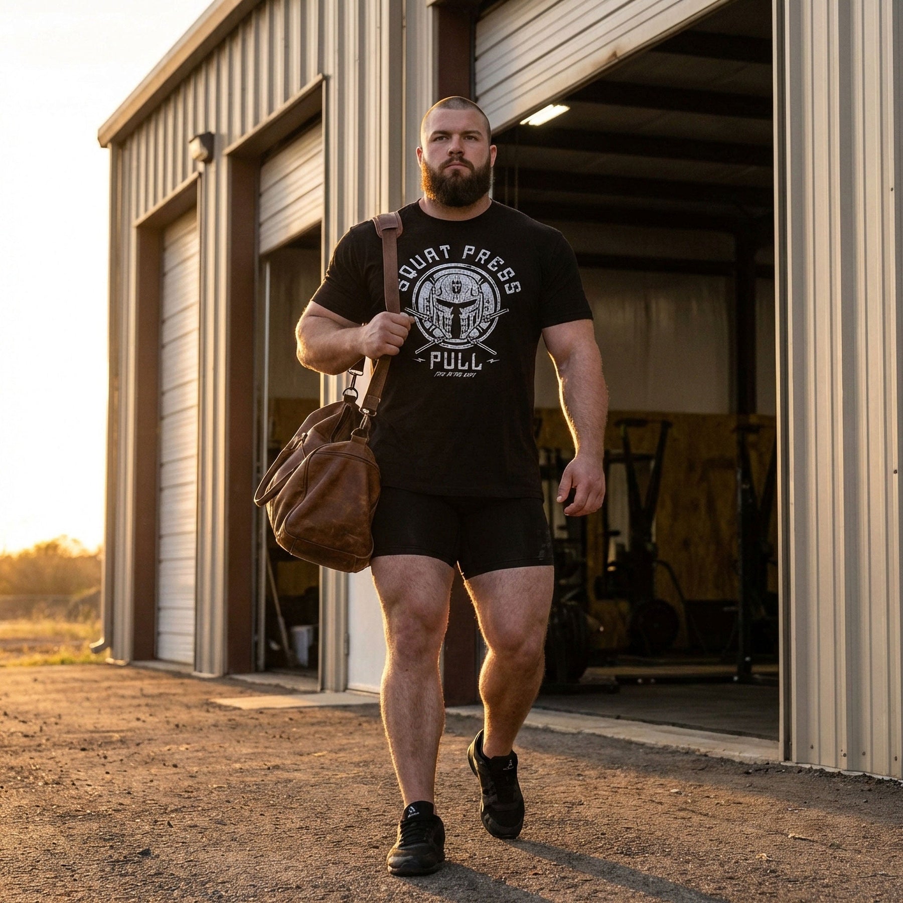 This isn't your average gym shirt. It's a 60/40 cotton-poly blend, soft enough for all-day wear, tough enough to handle heavy training sessions. Hand-printed in Tennessee by a competitive powerlifter who knows what it takes under the bar.
