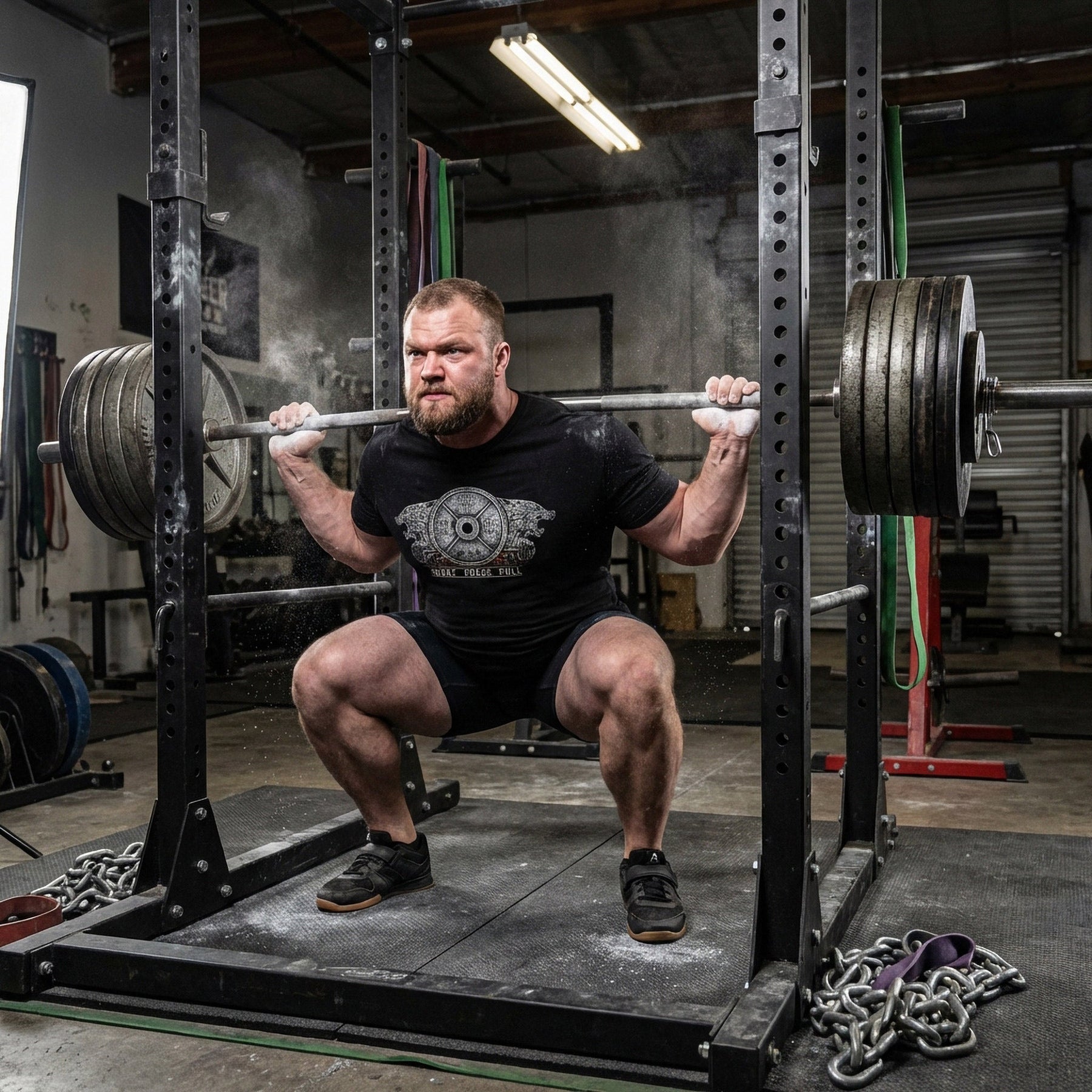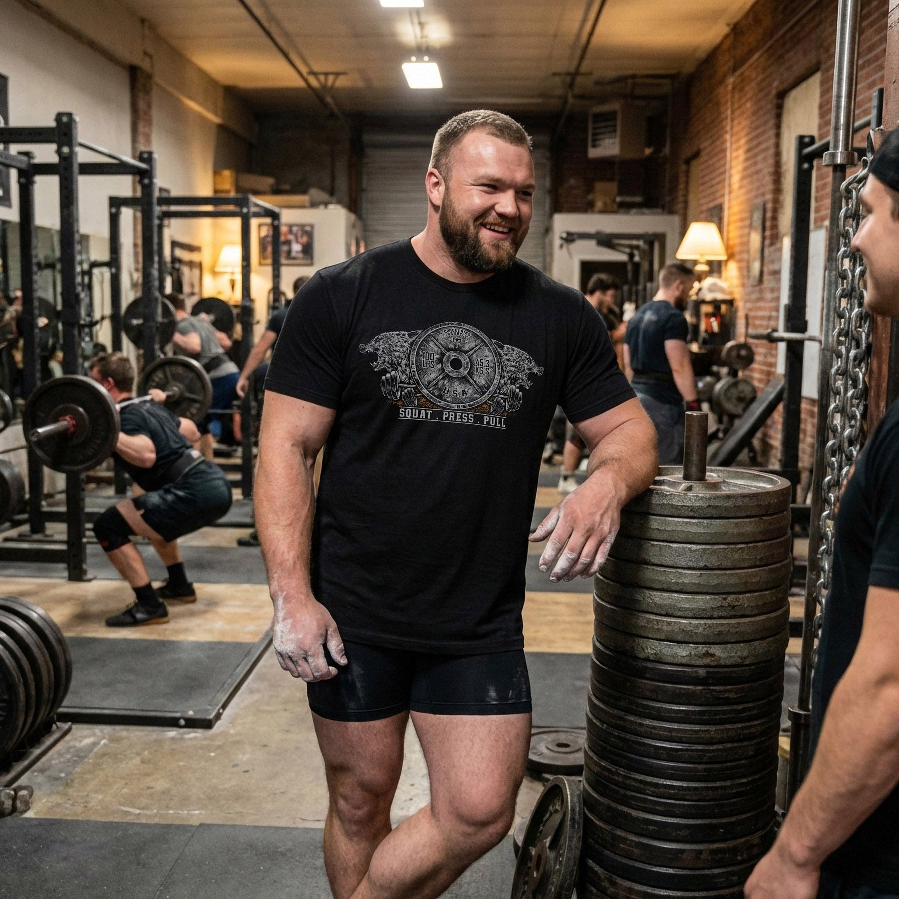 This isn't your average gym shirt. It's a 60/40 cotton-poly blend, soft enough for all-day wear, tough enough to handle heavy training sessions. Hand-printed in Tennessee by a competitive powerlifter who knows what it takes under the bar.