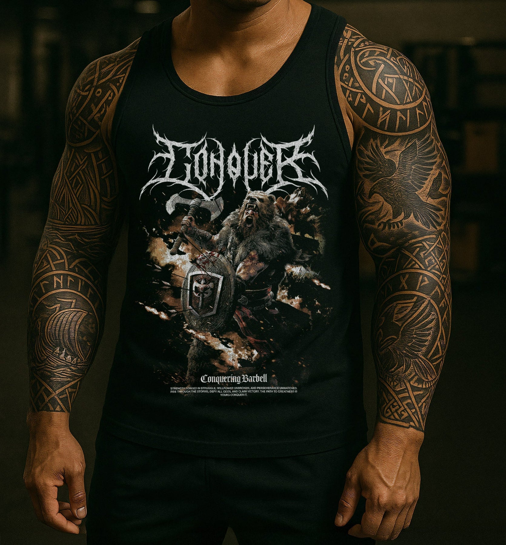 Berserker - on Black tank top - Conquering Barbell
