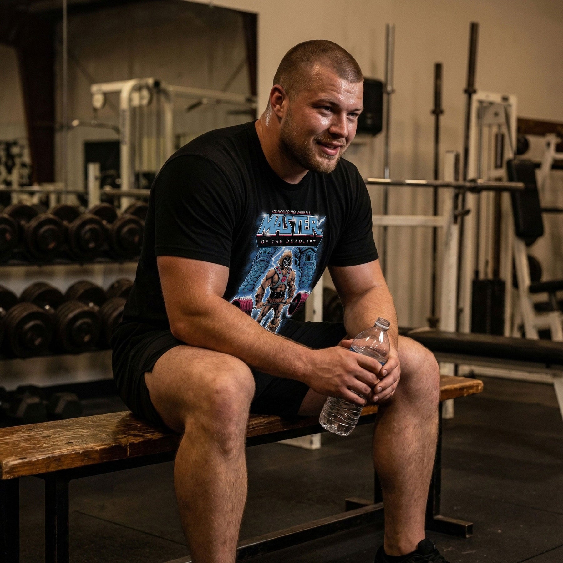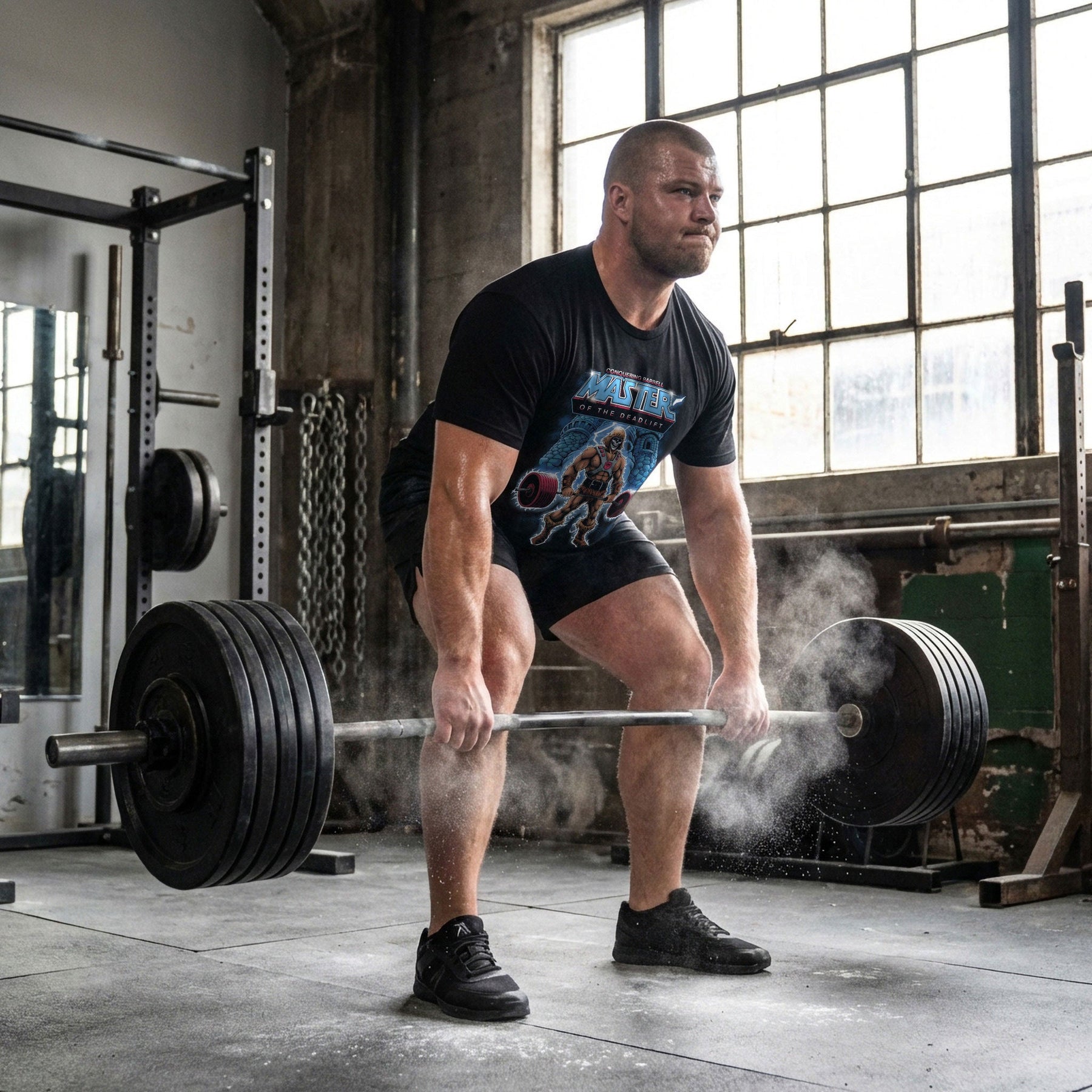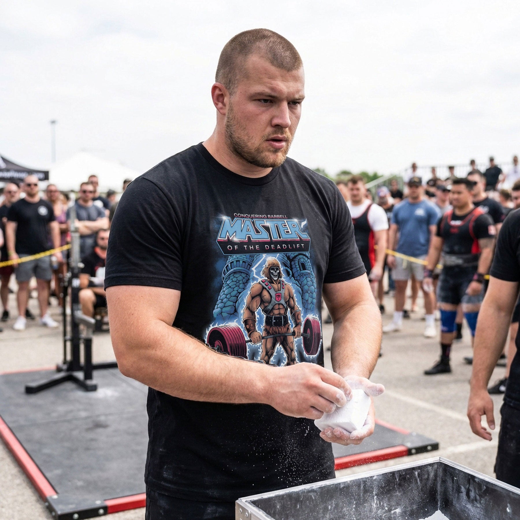 This isn't your average gym shirt. It's a 60/40 cotton-poly blend, soft enough for all-day wear, tough enough to handle heavy training sessions. Hand-printed in Tennessee by a competitive powerlifter who knows what it takes under the bar.