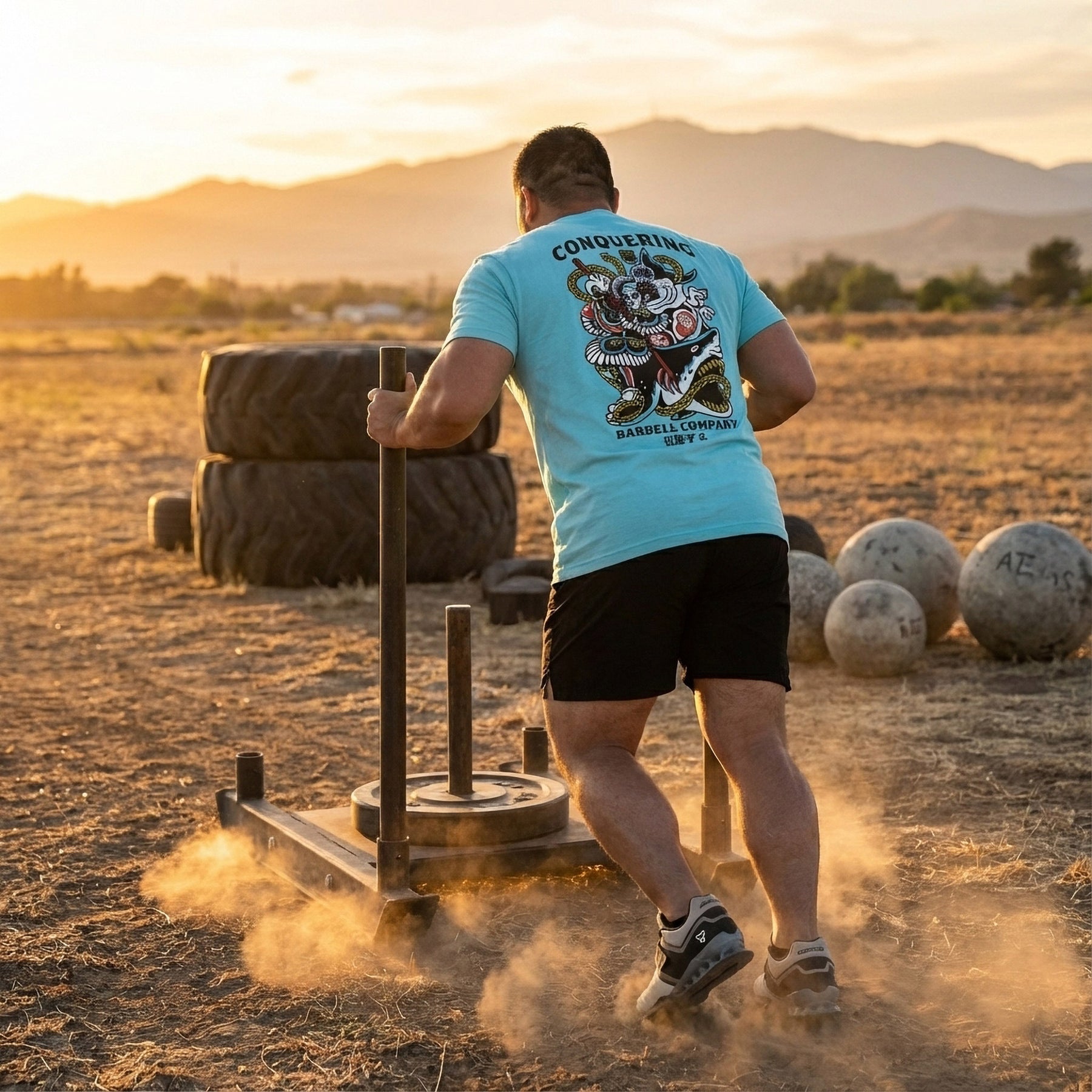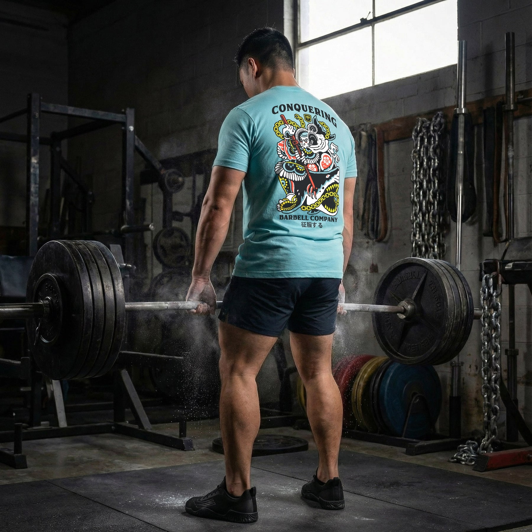 This isn't your average gym shirt. It's a 60/40 cotton-poly blend, soft enough for all-day wear, tough enough to handle heavy training sessions. Hand-printed in Tennessee by a competitive powerlifter who knows what it takes under the bar.