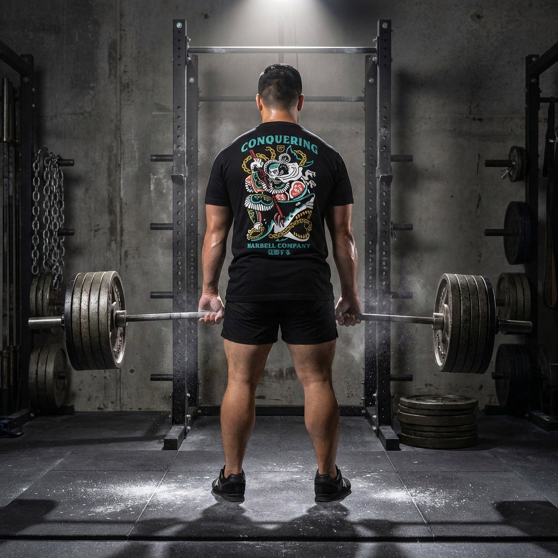 This isn't your average gym shirt. It's a 60/40 cotton-poly blend, soft enough for all-day wear, tough enough to handle heavy training sessions. Hand-printed in Tennessee by a competitive powerlifter who knows what it takes under the bar.