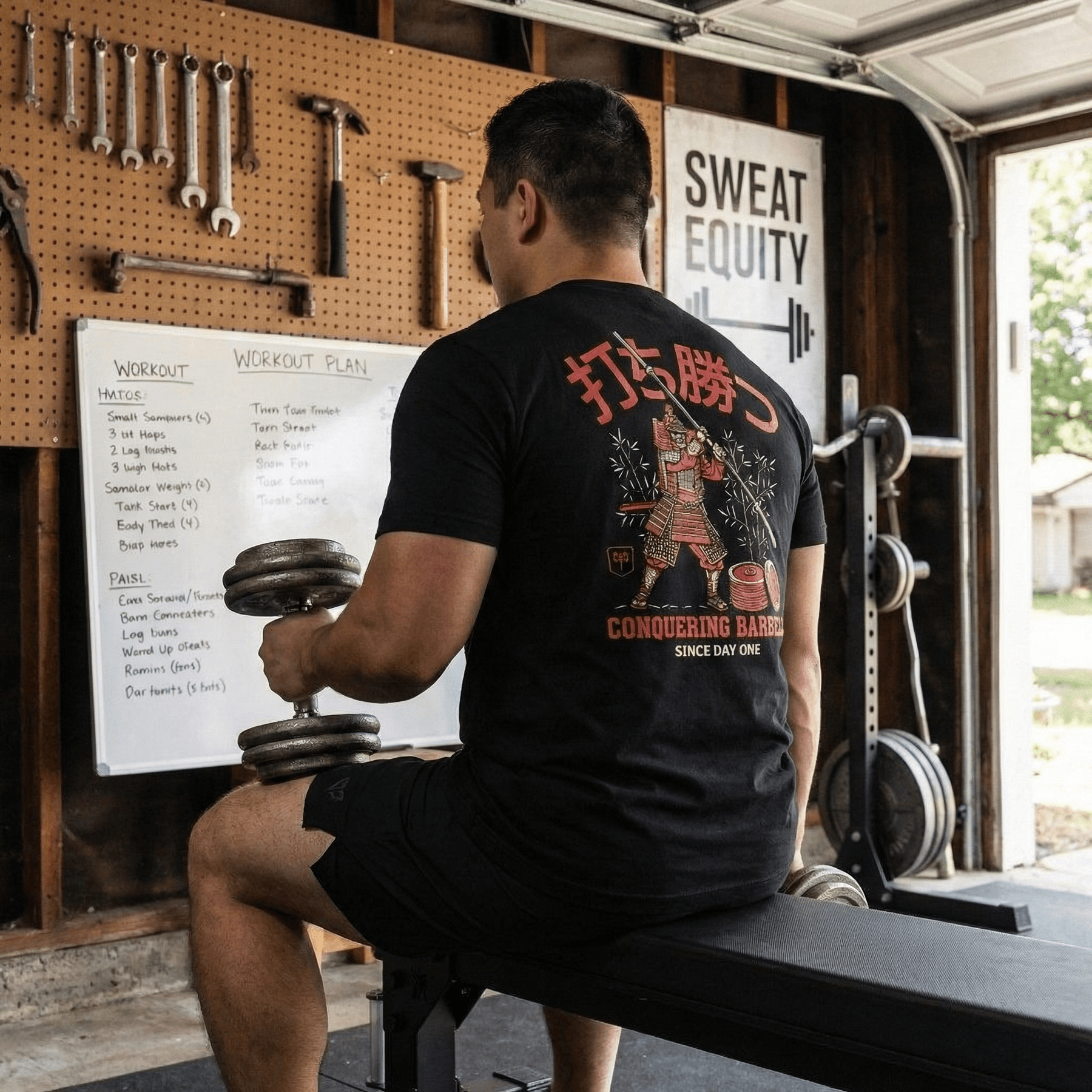 Conquer - Way of the Samurai - Black Tee - Conquering Barbell