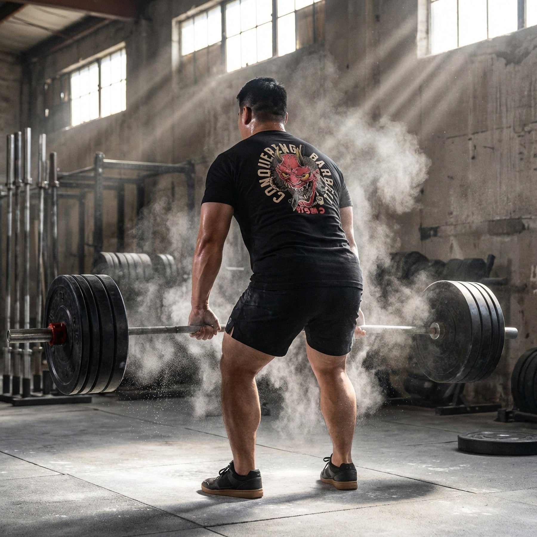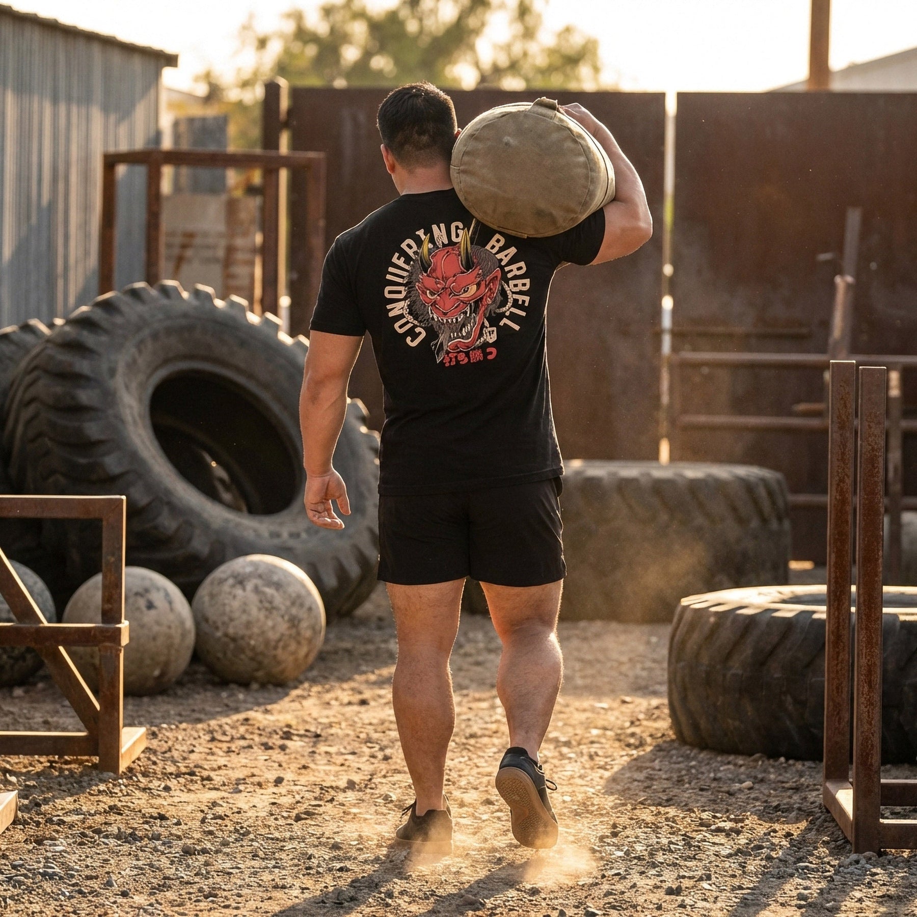 This isn't your average gym shirt. It's a 60/40 cotton-poly blend, soft enough for all-day wear, tough enough to handle heavy training sessions. Hand-printed in Tennessee by a competitive powerlifter who knows what it takes under the bar.