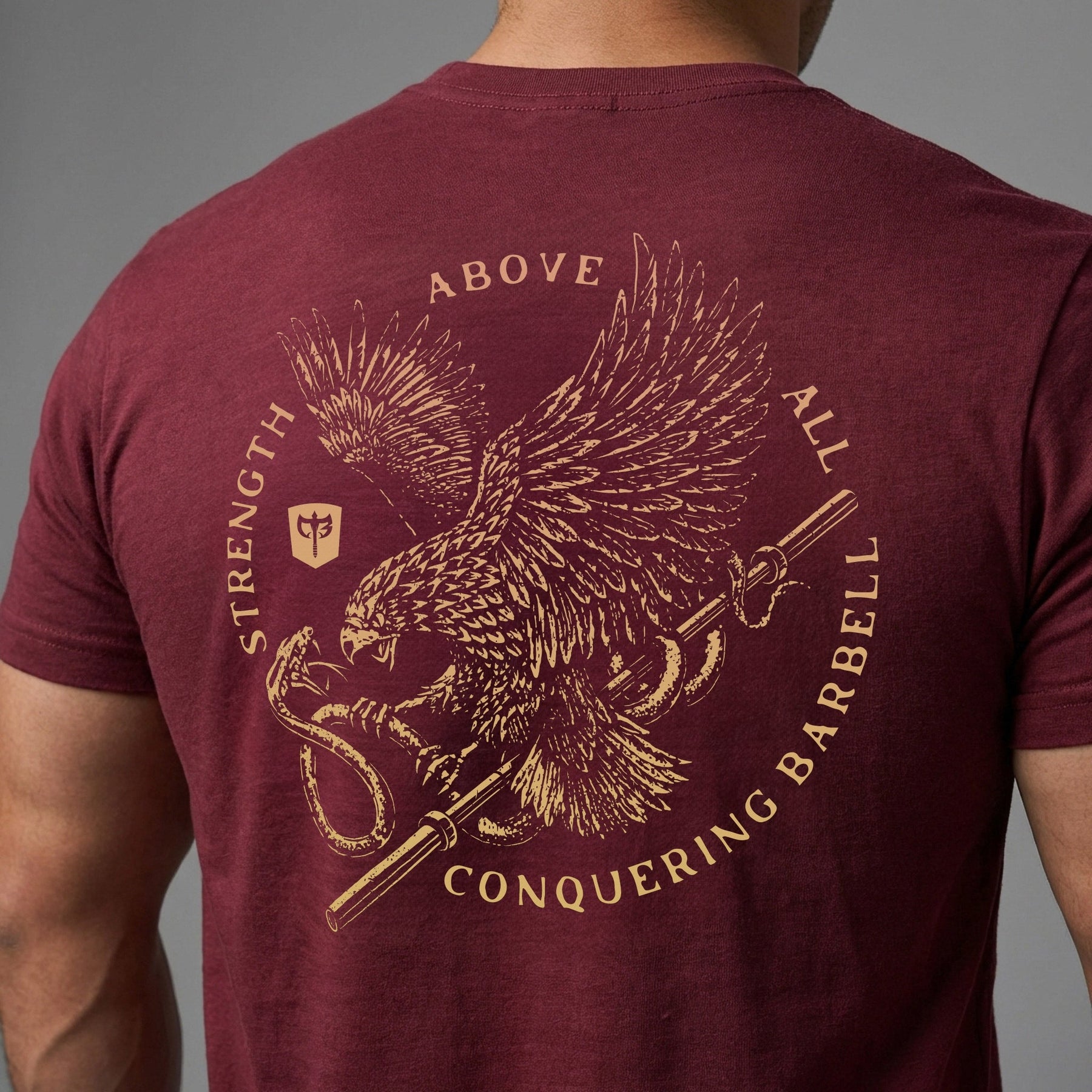 Eagle Vs Snake - on Maroon Tee - Conquering Barbell