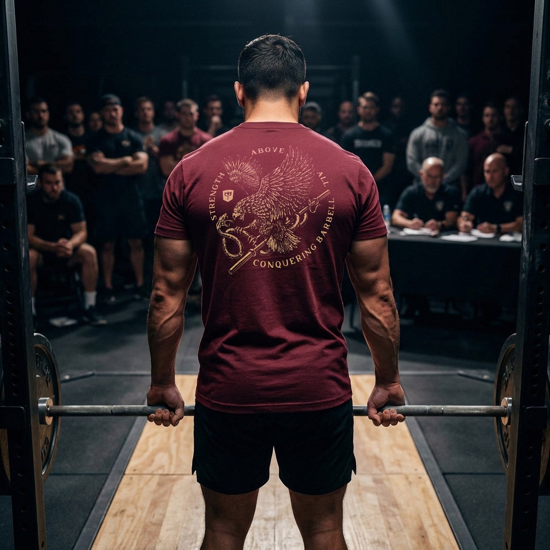 This isn't your average gym shirt. It's a 60/40 cotton-poly blend, soft enough for all-day wear, tough enough to handle heavy training sessions. Hand-printed in Tennessee by a competitive powerlifter who knows what it takes under the bar.